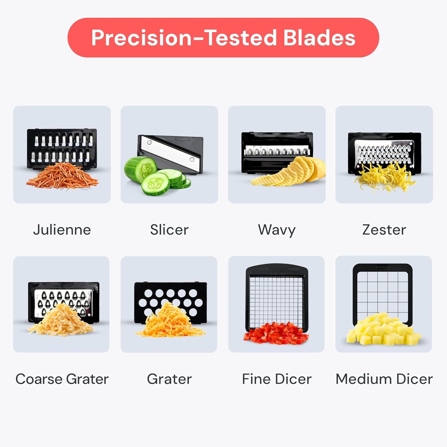 Packaging May Vary – We’re updating our packaging to bring you the best experience. If you receive a box labeled “8-in-1,” don’t worry—it’s the same model as our “All-in-1” chopper. Only the packaging name has changed. Please reach out to our customer service team if you have any questions.