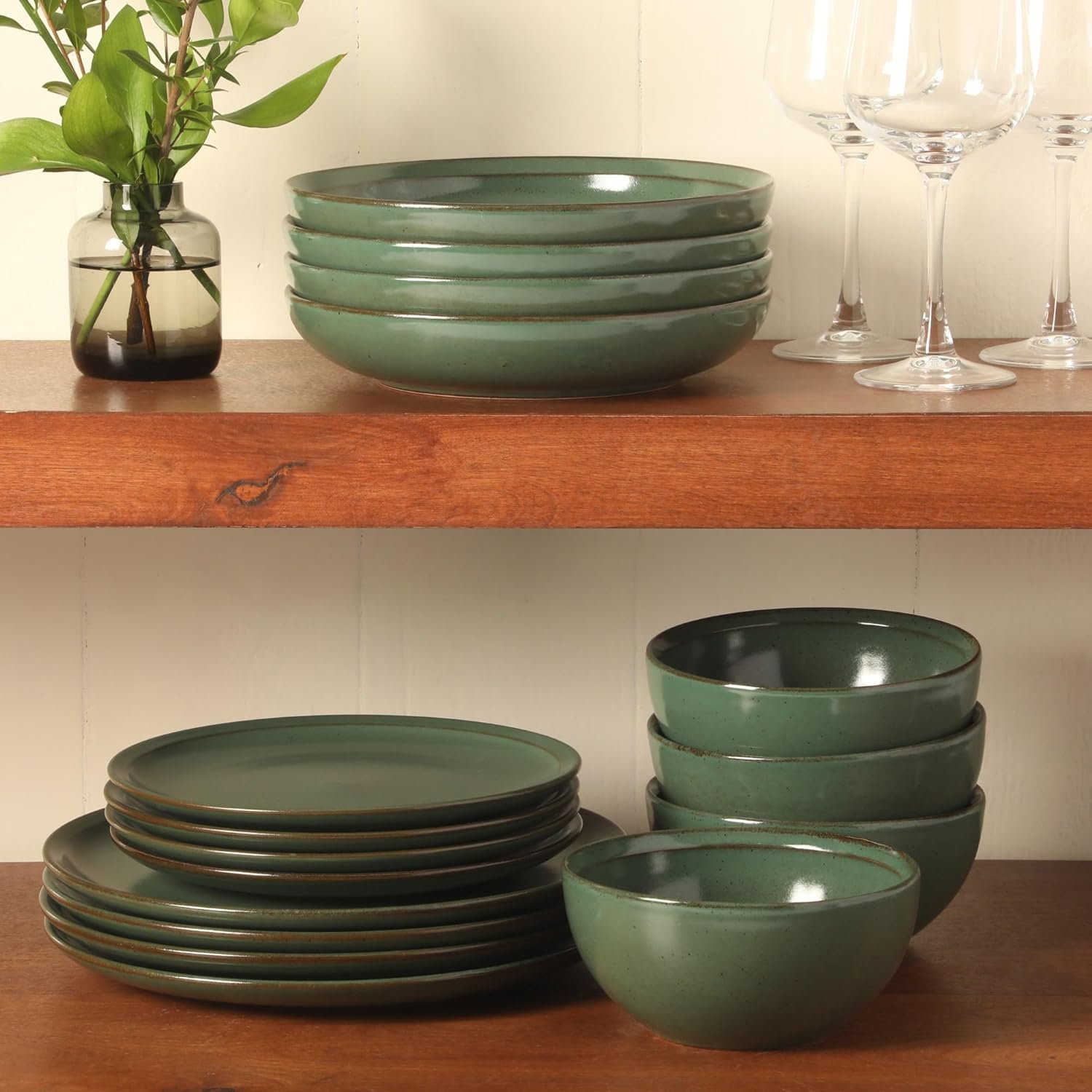13 reviews for Gibson Elite Beckett Stoneware Matte Reactive Glaze 16 Piece (Service for 4) Plates and Bowls Dinnerware Set – Green