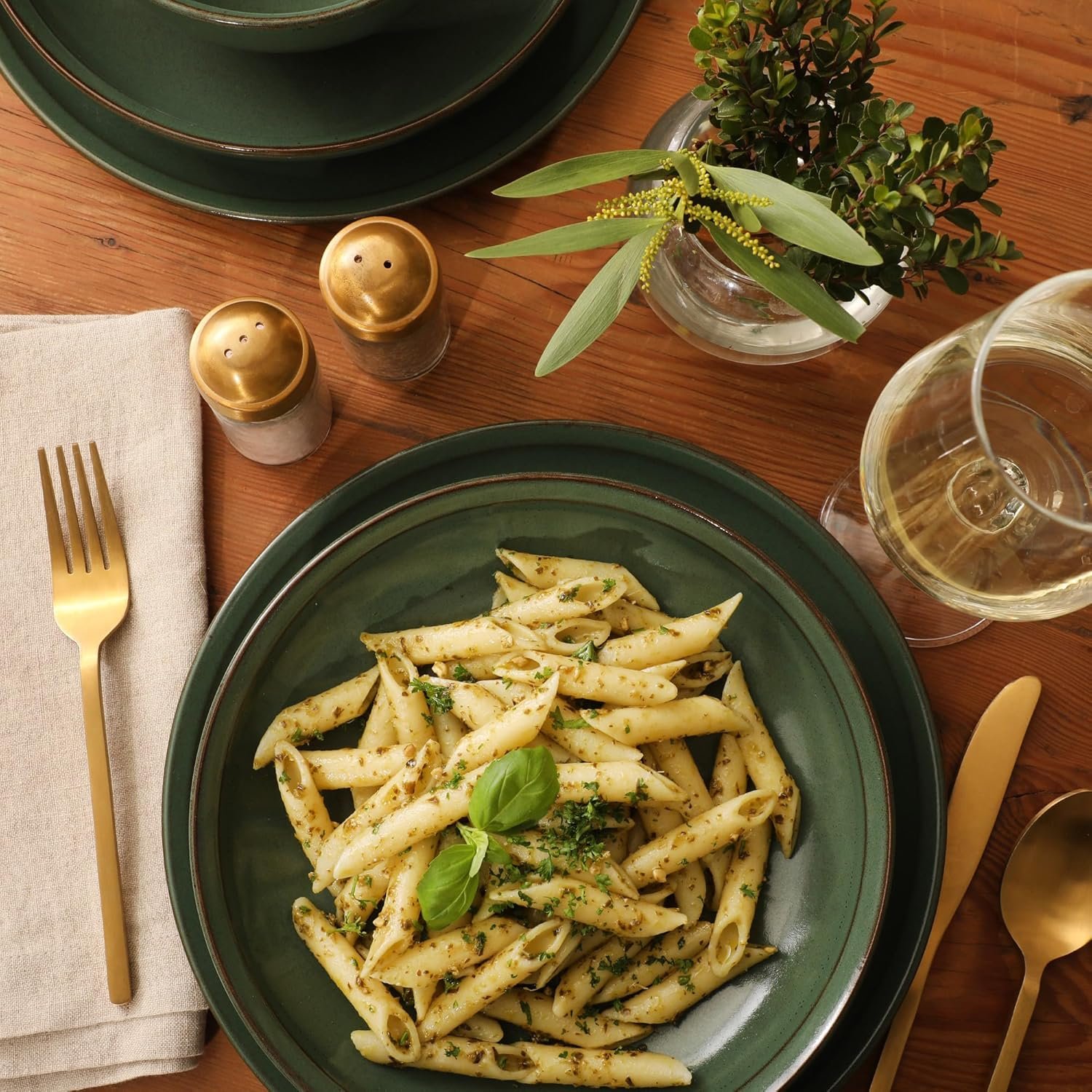 WEAR-RESISTANT STONEWARE: Sturdy stoneware plates and bowls crafted to serve meals every day for any style, occasion, and budget. Fired at high temperatures to create a non-porous surface, this dinnerware set ensures strength and durability for long-lasting use.