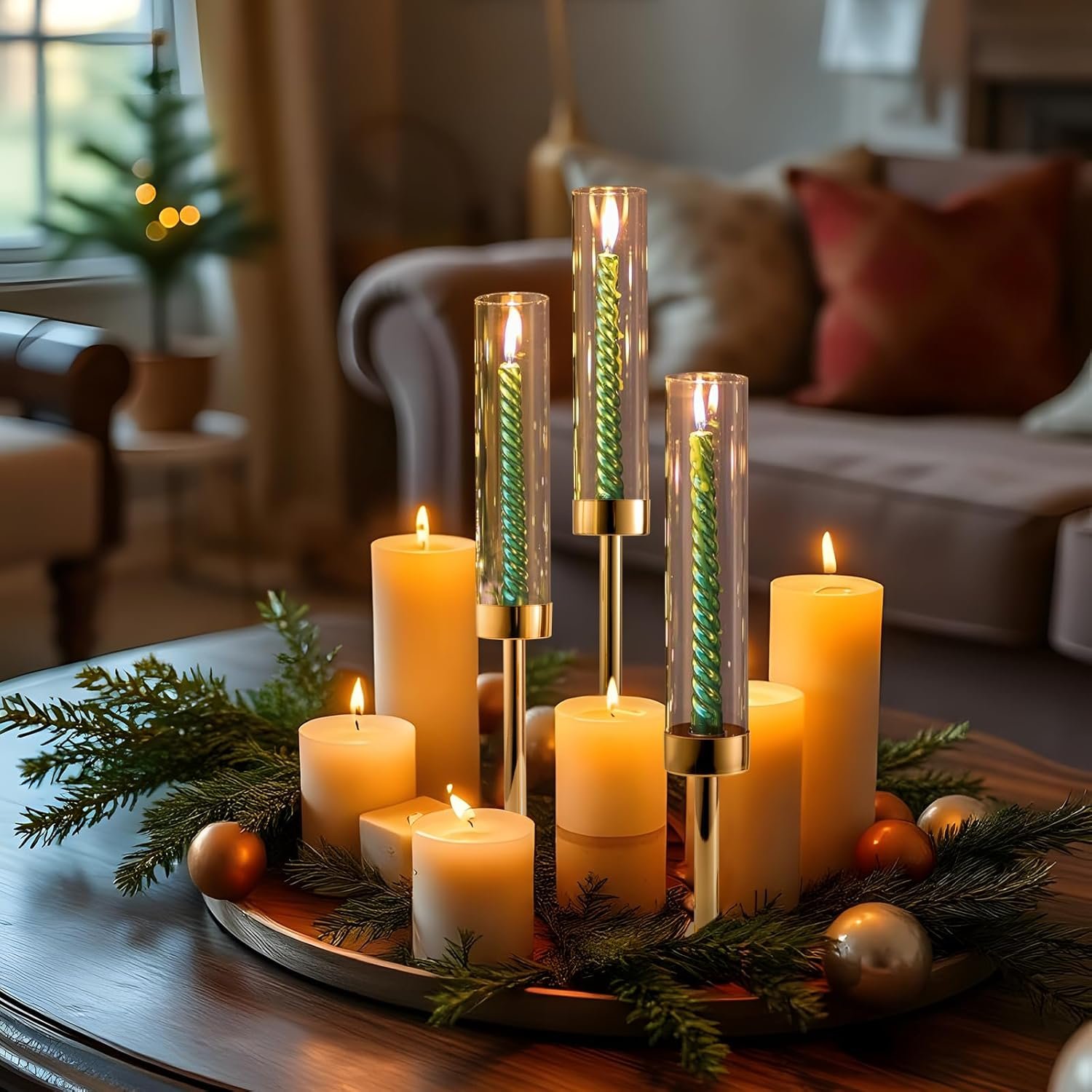 Wind-Resistant Hurricane Glass: Each decorative candle holder comes with thick glass tube to protect candle flame and reduce wax drips, making glass candle holder perfect for indoor and outdoor use
