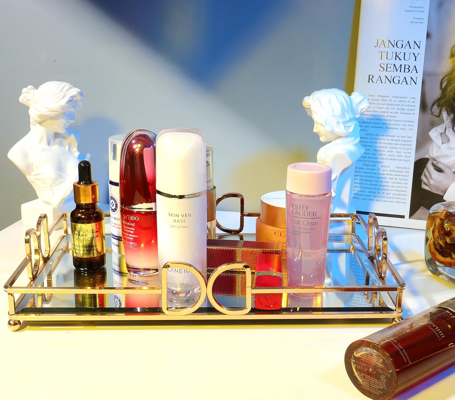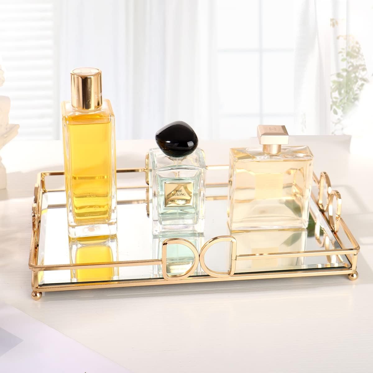 High Quality Material and Process: Perfume tray, Jewelry Decor Mirror Tray with metal plating process, high gloss rust-proof and non-fading, high-definition mirror tray wear-resistant and durable, not fragile.