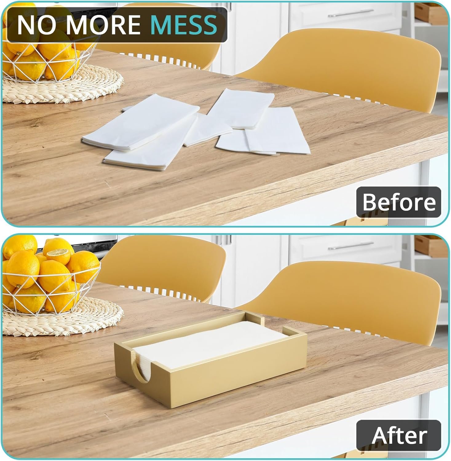 This napkin holder is exactly what I was looking for — simple, sturdy, and really well made. The acacia wood has a nice finish and looks great on the table. It holds standard lunch napkins perfectly and doesn’t slide around. Clean design that works with any decor.