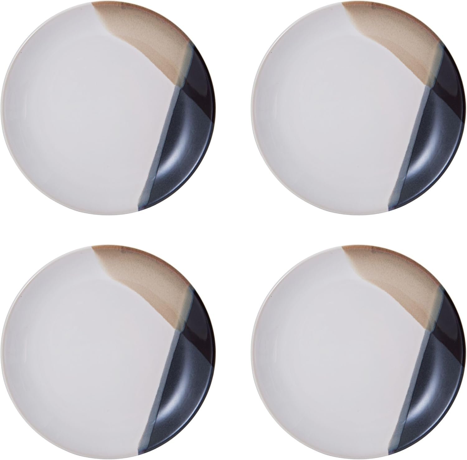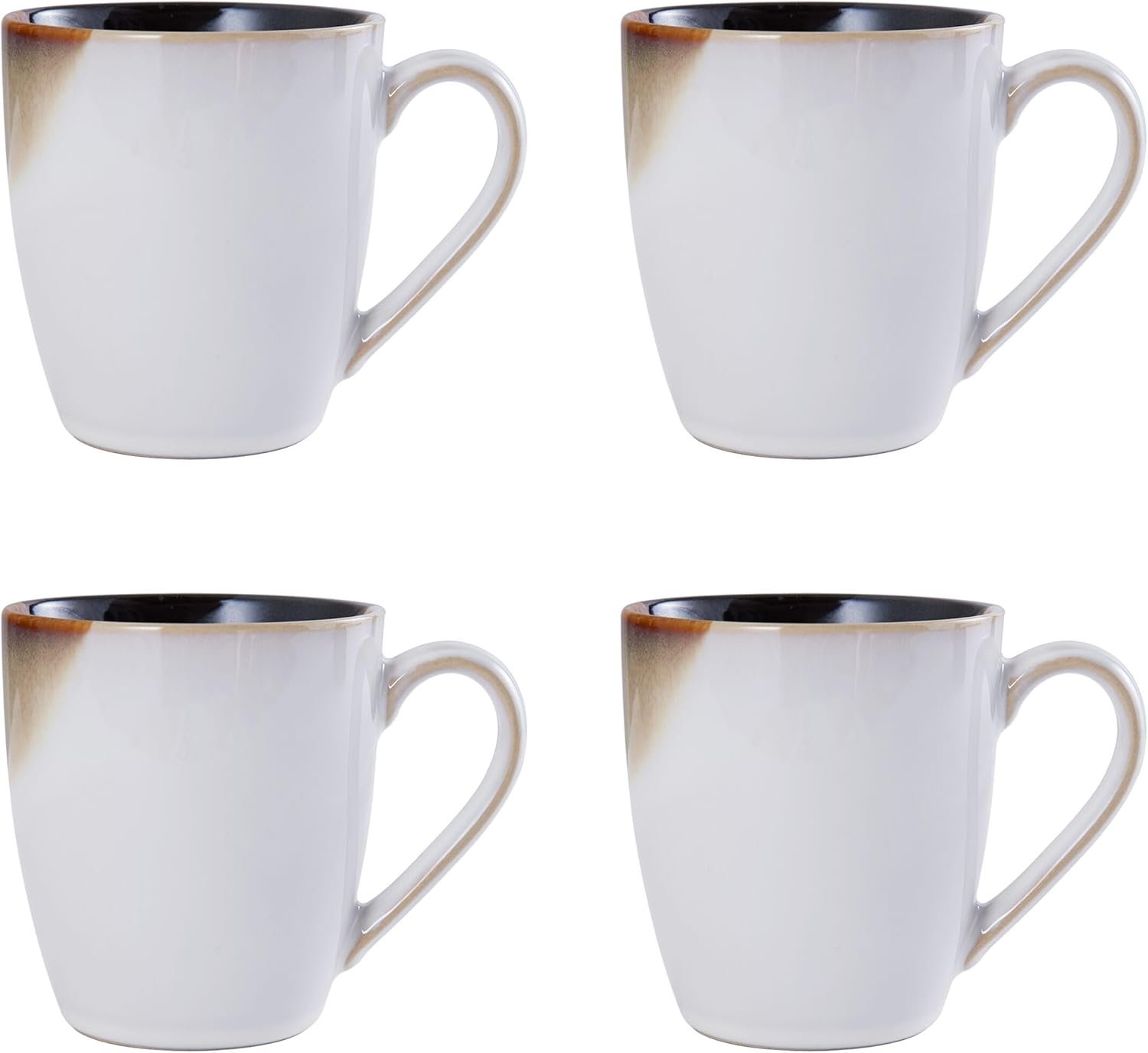 Add a touch of modern elegance to your table with the Gourmet Basics by Mikasa Caden 16-Piece Dinnerware Set. This beautifully crafted set features a unique two-tone design, with a rich black and tan reactive color along the edges that naturally creates slight variations, making each piece one-of-a-kind. The center of each plate and bowl is finished with a sleek, glossy white glaze, providing a striking contrast that complements both casual and formal table settings. Perfect for everyday dining or special occasions, this set includes service for four with four 11-inch dinner plates, four 8.5-inch salad plates, four 6-inch bowls, and four 14-ounce mugs. Made from high-quality, durable stoneware, this dinnerware set is built to withstand the demands of daily use while maintaining its stylish appearance. The contemporary yet timeless design easily pairs with a variety of table décor. For added convenience, all pieces are microwave and dishwasher safe, making mealtime preparation and cleanup simple and efficient.