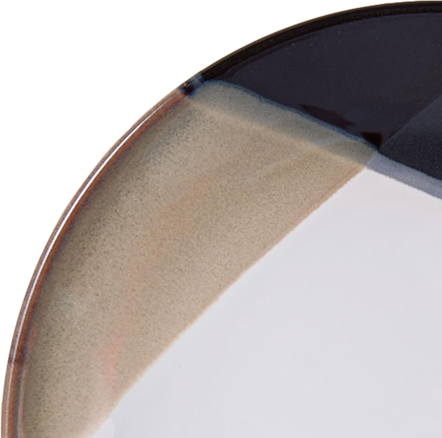 CONTEMPORARY AND INVITING: Unique black and tan two tone reactive color on product along outside of dinnerware with white glossy center