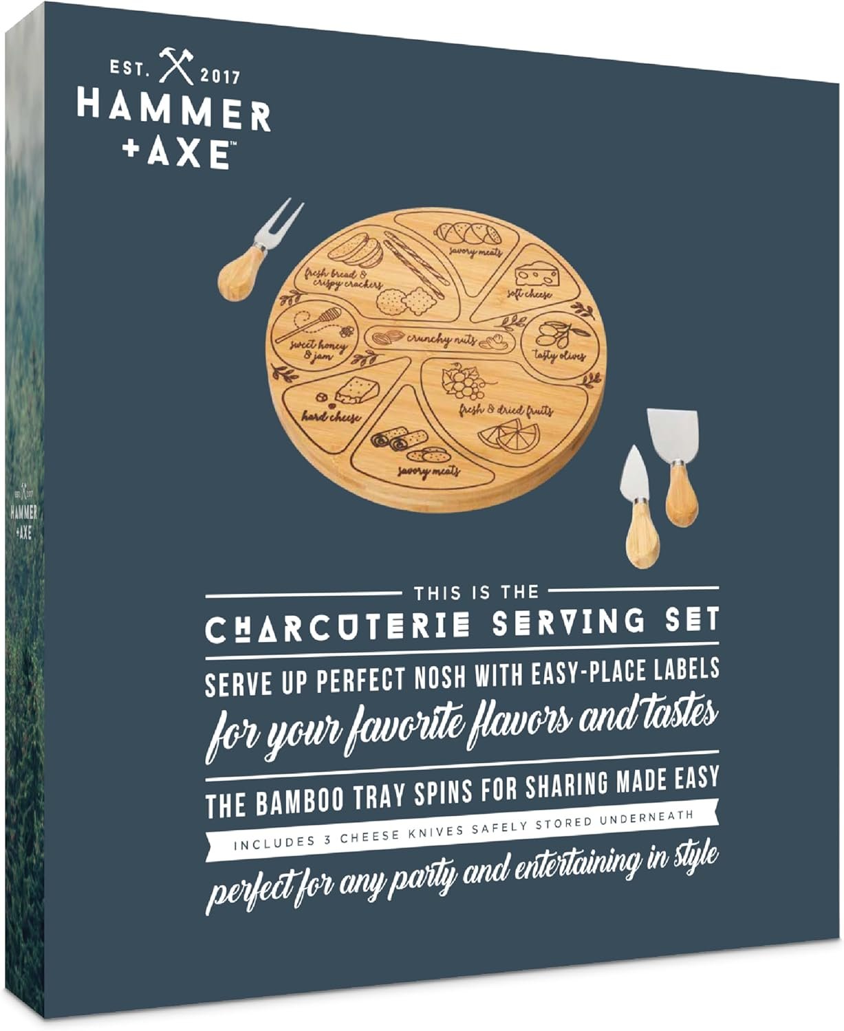 8 reviews for Hammer + Axe Charcuterie Board Set, Round Lazy Susan Bamboo Tray with 3 Cheese Cutter Accessories, Wooden Meat & Cheese Board, Housewarming Gift