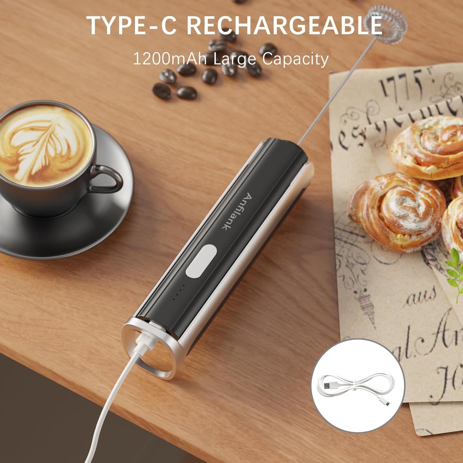 Long Battery Life, USB-C Charging: Say goodbye to disposable batteries! The built-in 1200mAh high-capacity battery lasts for weeks on a single charge, easily making 30+ drinks. USB-C charging port, convenient for home and travel.