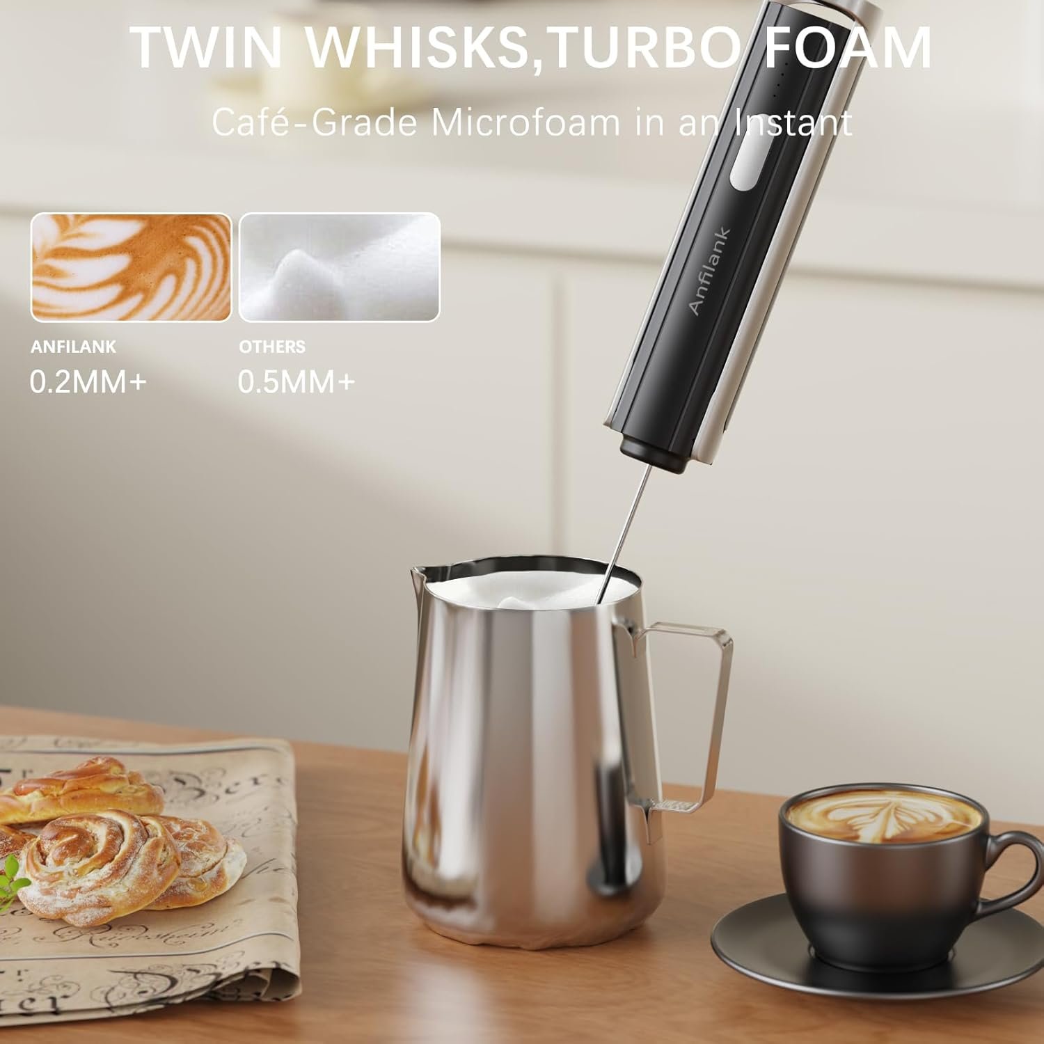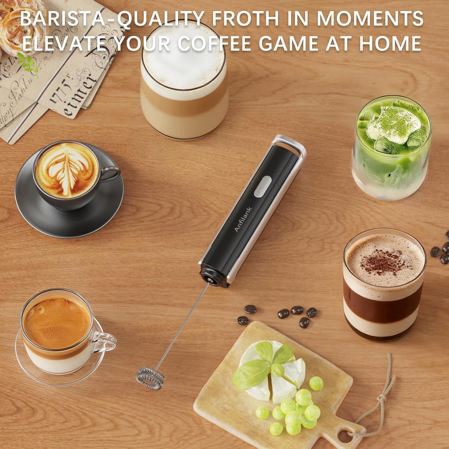 15-Second Speed, 3-Speed Precise Texture Control: Three professional speed settings (4000/6000/8000 rpm): low speed for gentle stirring, medium speed for rich milk foam, and high speed for whipping cream. In just 15 seconds, your coffee will have a silky smooth texture perfect for a coffee shop.