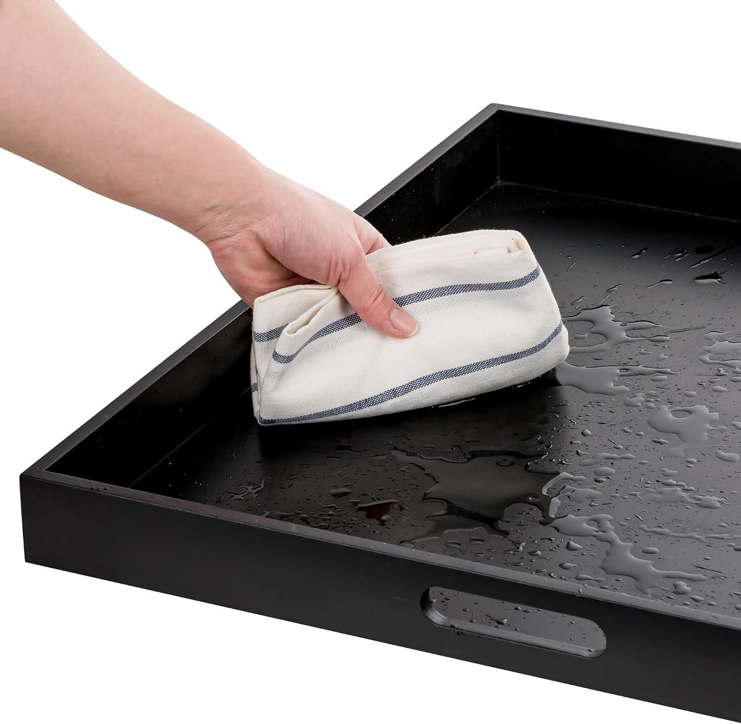 13 reviews for Hanobe Ottoman Tray for Living Room: Modern Extra Large Black Serving Decorative Trays with Cutout Handles for Coffee Table Home Decor, 20″