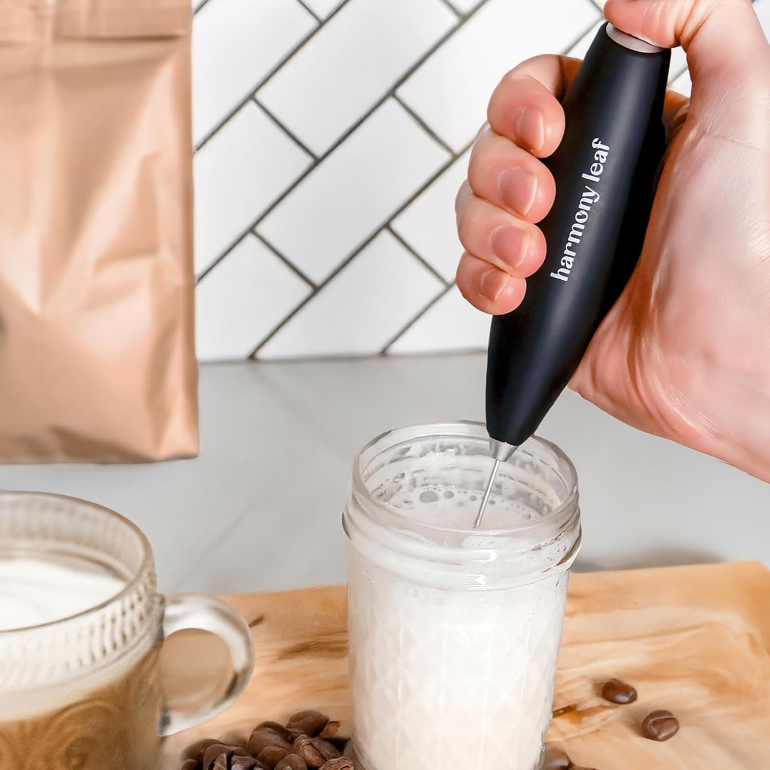 Barista Style Foam in Seconds: Handheld milk frother with a stainless steel whisk that creates smooth, airy foam for lattes, cappuccinos, matcha, and hot chocolate.