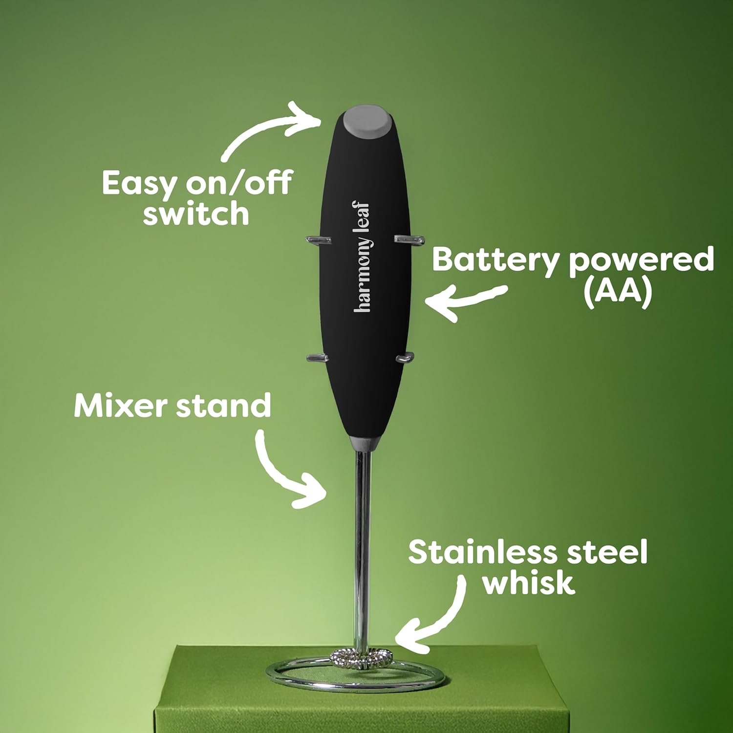Be the first to review “Harmony Leaf Handheld Milk Frother, Stainless Steel Electric Drink Mixer with Stand, Battery Operated Coffee Frother for Lattes, Matcha, Hot Chocolate and More, Black”