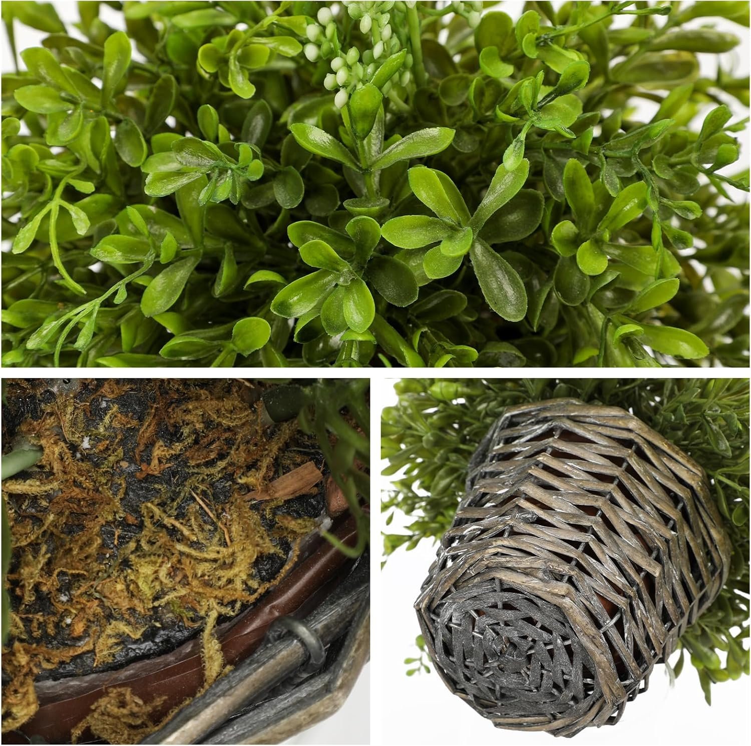Farmhouse Greenery Centerpiece Decor: The package includes 1 Pcs faux boxwood plant. The lifelike artificial boxwood plants are nestled in a charming woven planter box, ready for display. Place this faux boxwood potted plant in various areas of your home or workspace to bring a touch of color and freshness to your surroundings