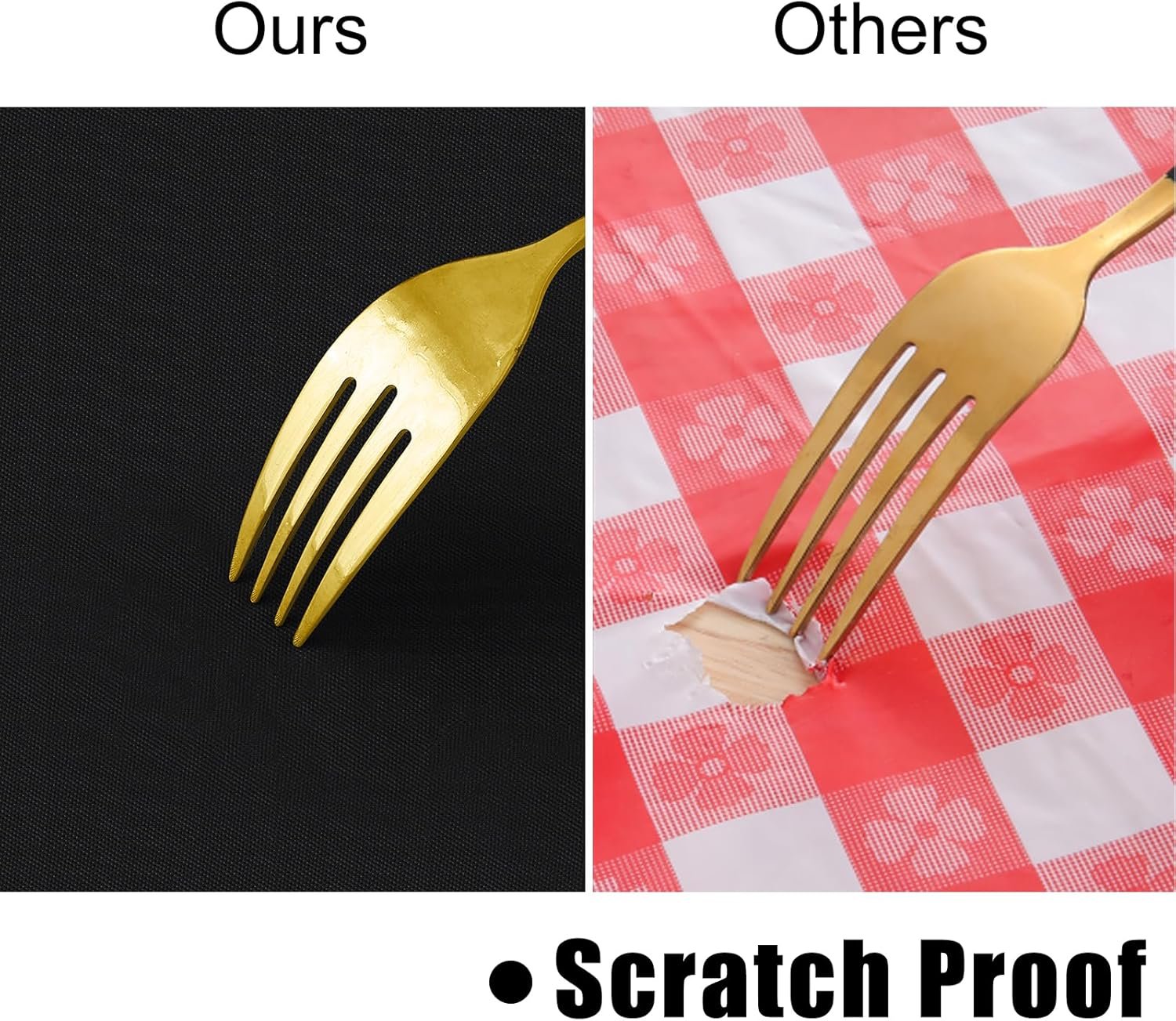 [Sturdy & Functional] The surface of our tablecloth features premium vinyl material, which makes it more sturdy and protects your table from everyday wear and tear, and tableware scratches