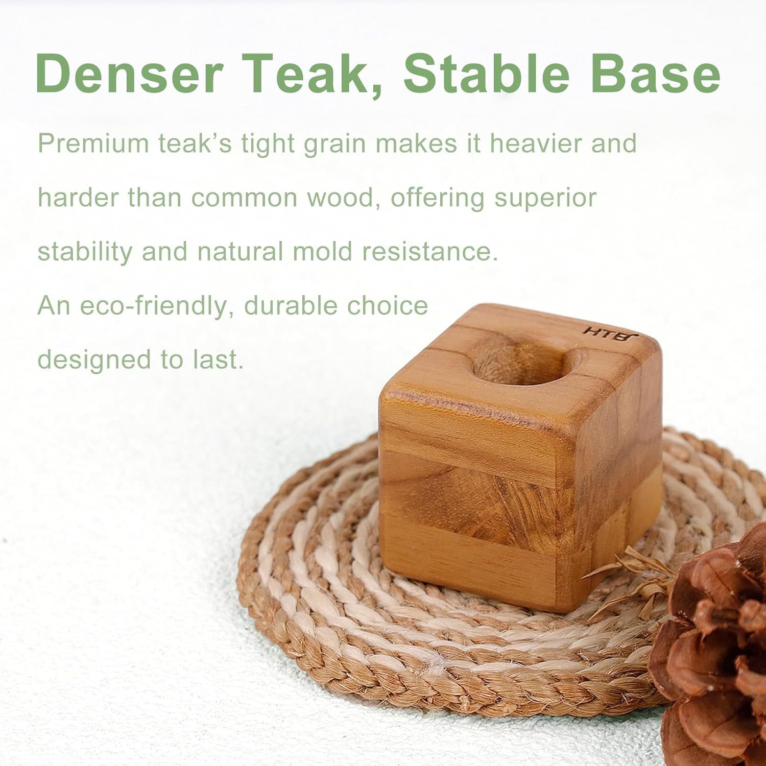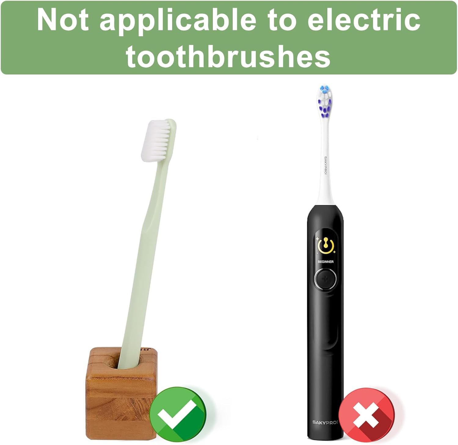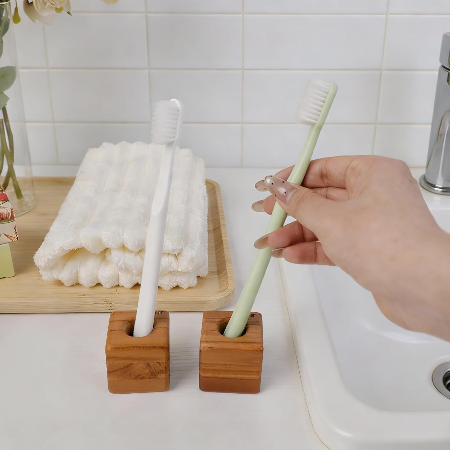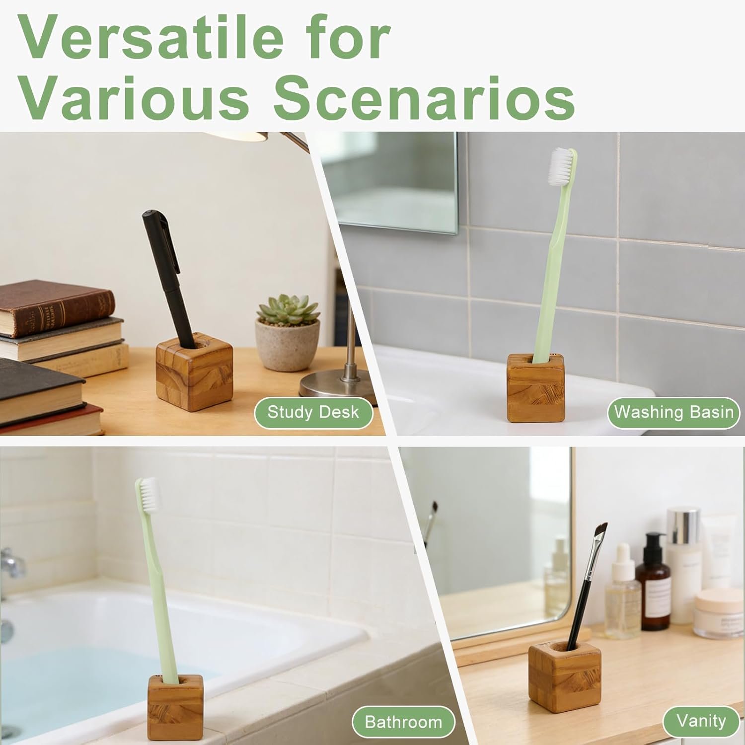 HTB Toothbrush Holder for Bathroom,2 Pack Teak Wood Toothbrush Stand Organizer Base Station Hollow Drainage Design,Small Countertop Organizer for pens,Makeup Brushes,Space Saver