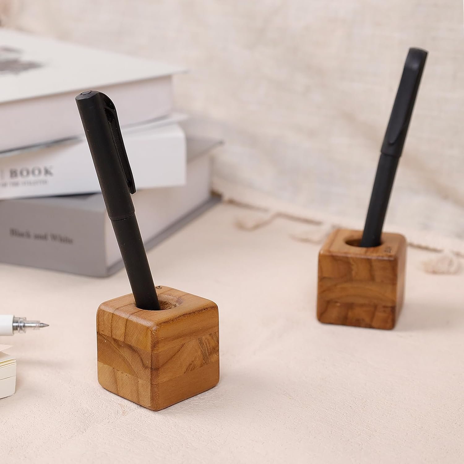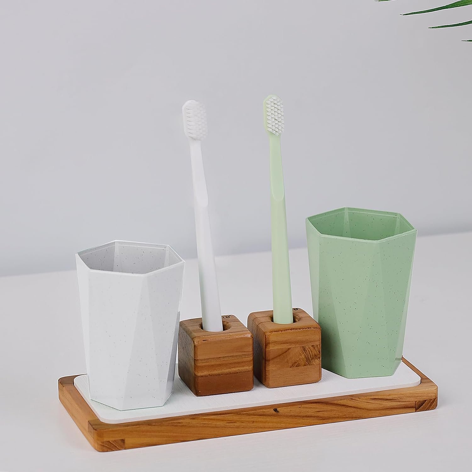 Crafted from solid teak wood, this two-piece bathroom toothbrush set offers a naturally water-resistant and durable storage solution for everyday items