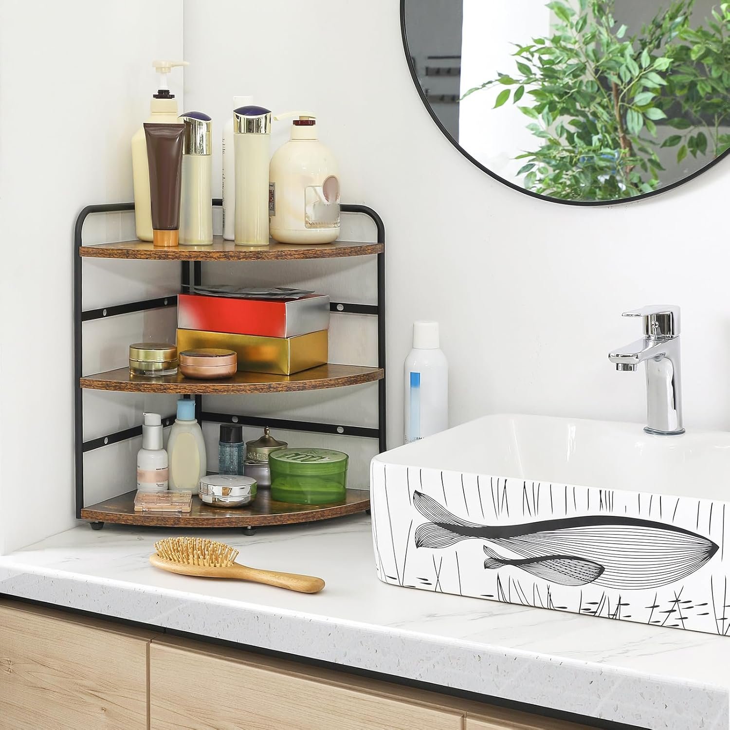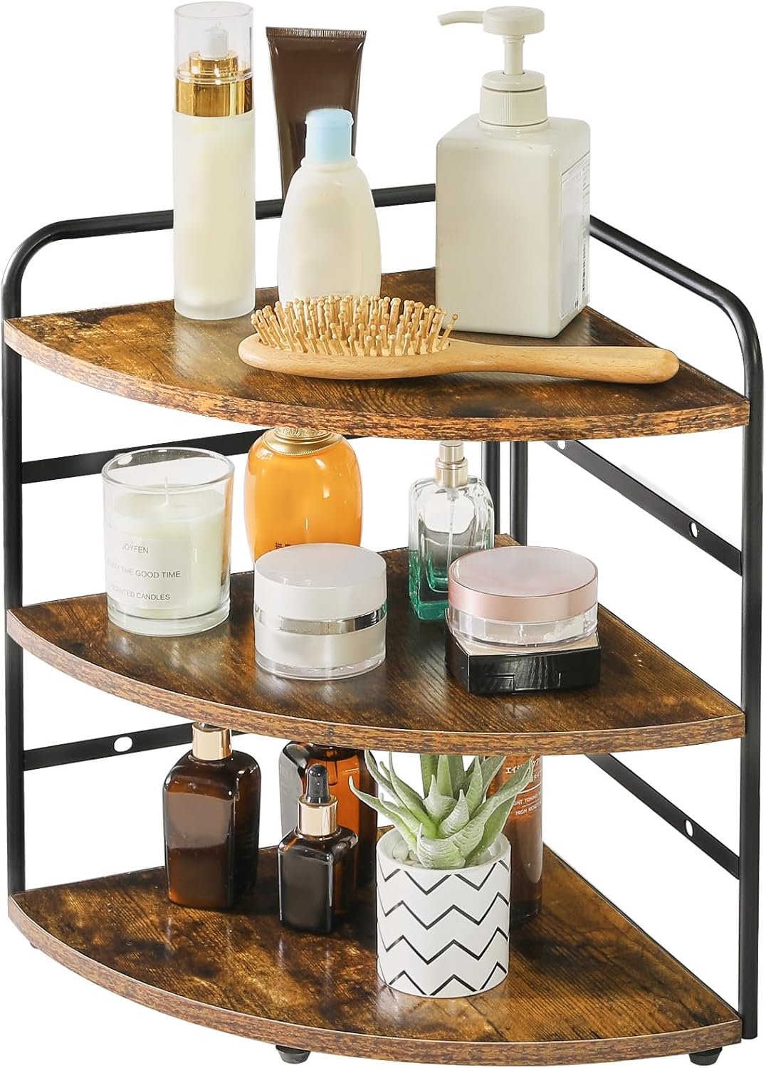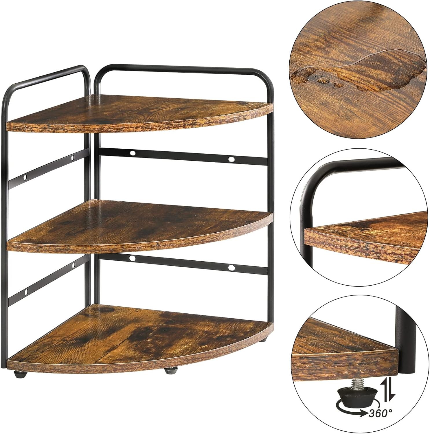 BUILD TO LAST: Instead of plastic or acrylic texture, the combination of composite wood and metal bring the corner shelf a durable and eco-friendly experience. Holds up to 10kg per shelf. All your cosmetics, jars, containers and bottles will be neat andorganized with this simple rack.