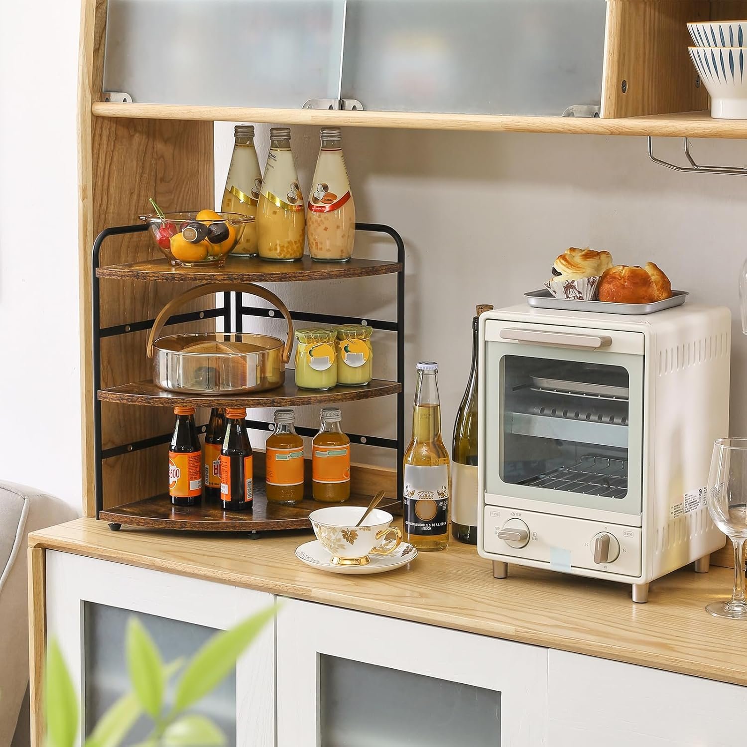 COMPACT AND WIDE USE: Being 42cm tall x 29.5 wide, the pantry organizer will fit at the corner of your kitchen counter. Your dinnerware will also fit perfectly in this. Install one or a few into your home to curb clutter or mess.