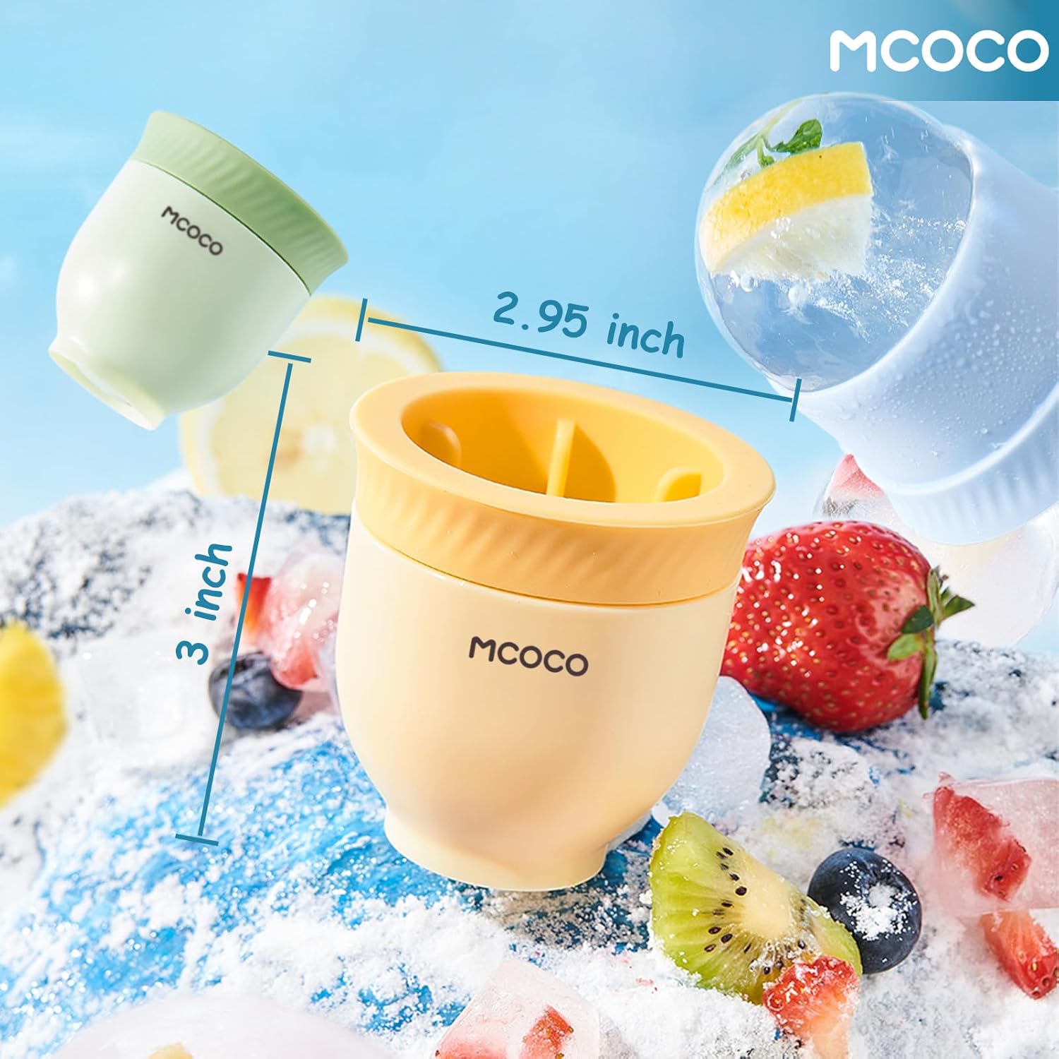Round Large Ice Cube Mold: MCOCO ice ball maker mold creates 2.5 inch large round ice cubes; Large ice ball melts slower than regular ice cubes; It helps keep your drinking experience refreshing for longer
