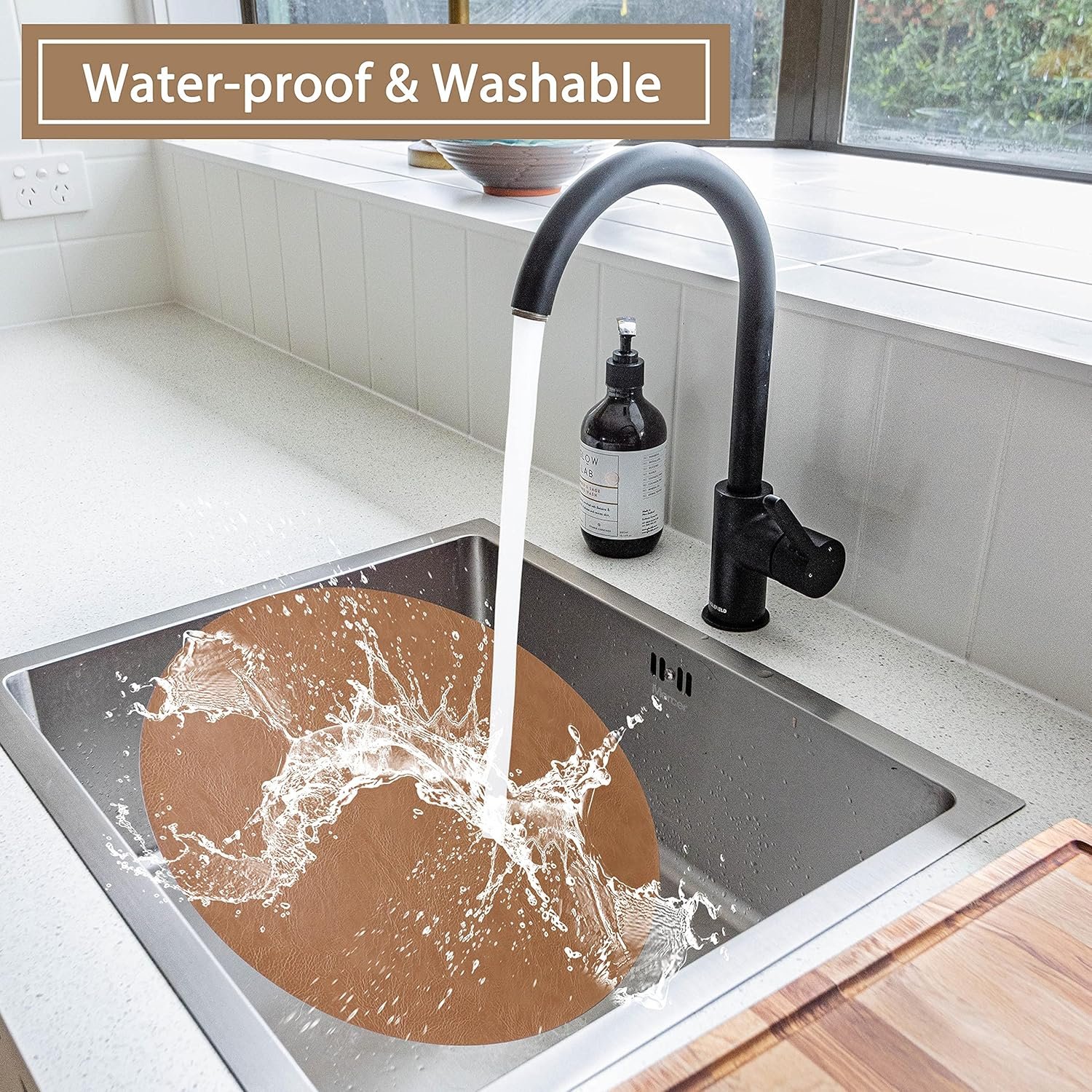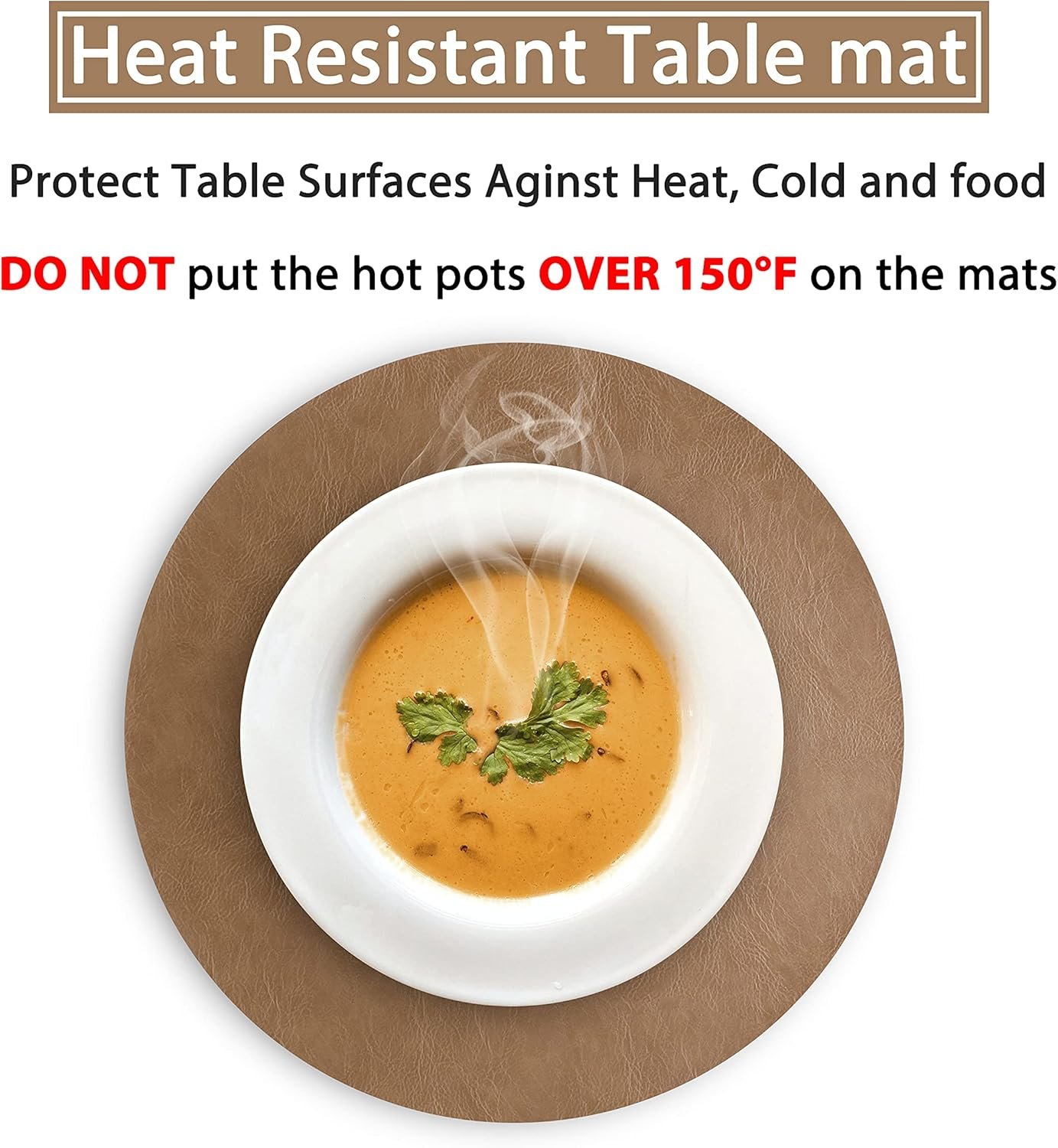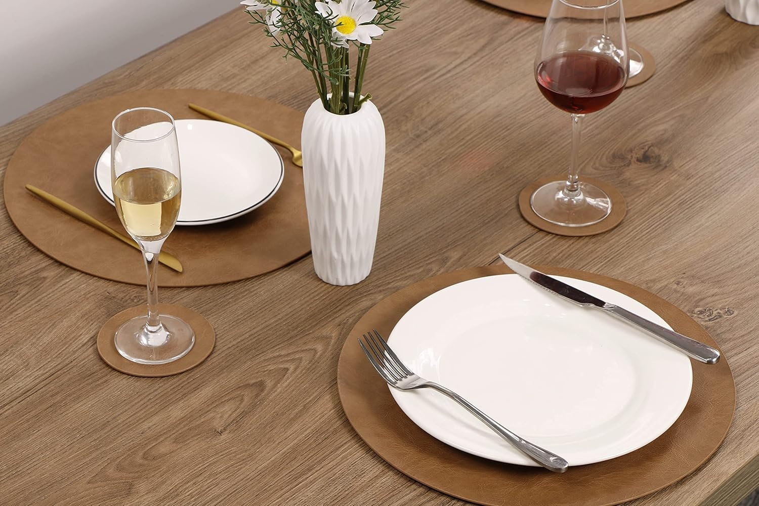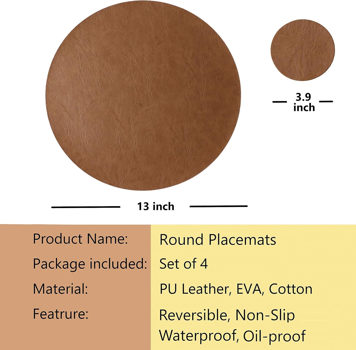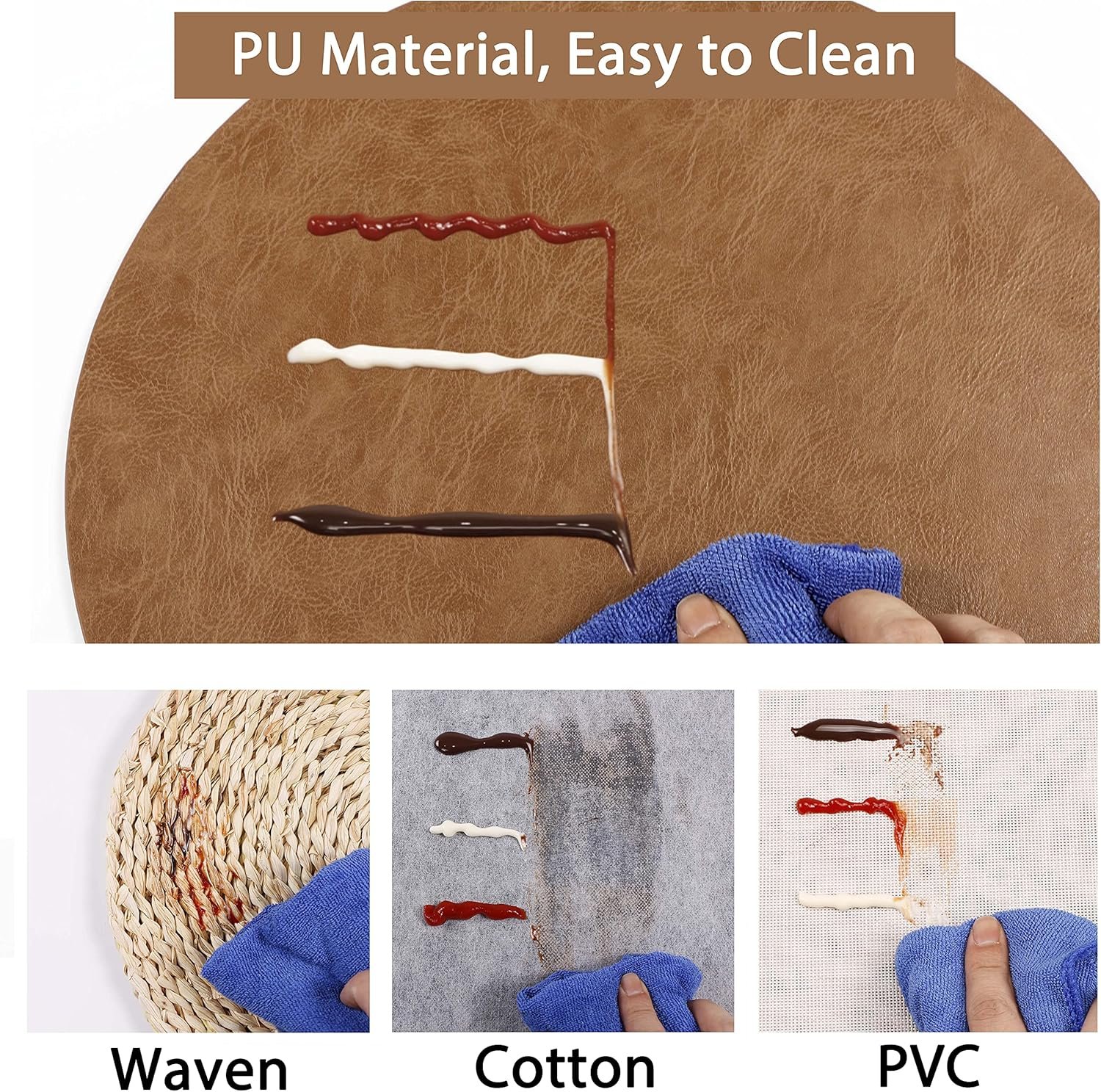 Jovono Embossed PU Leather Placemats, Waterproof Coffee Coasters, Kitchen Table Mats, Easy to Wipe Off for Dining Round Table