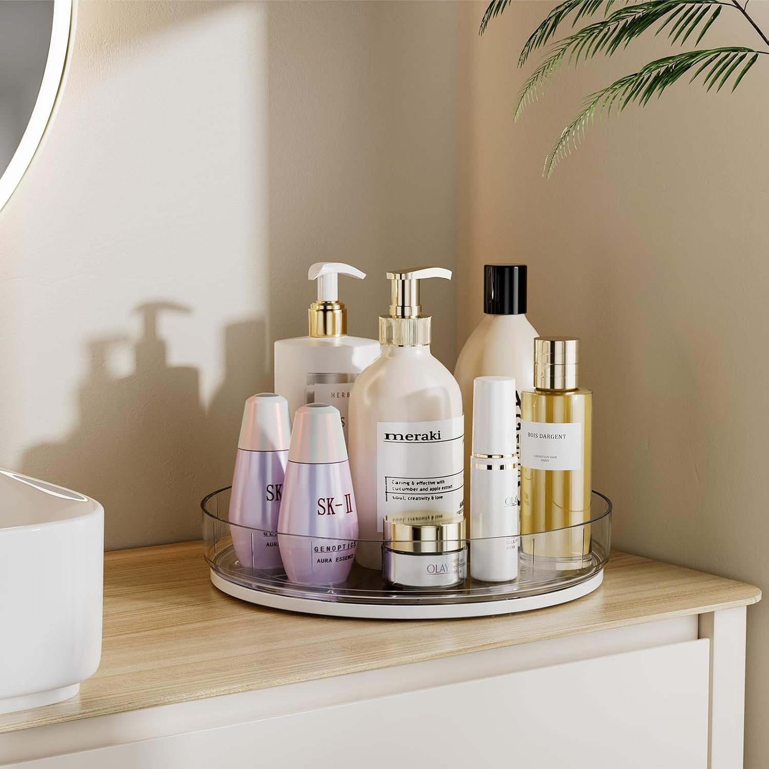 Raised Edge for Safe Storage: The raised edge design of the lazy susan for table top prevents items from slipping off during rotation and is sturdy and beautiful. The safe and practical lazy susan for spices is your right choice for storing glass bottles, spice jars, cosmetics and other items
