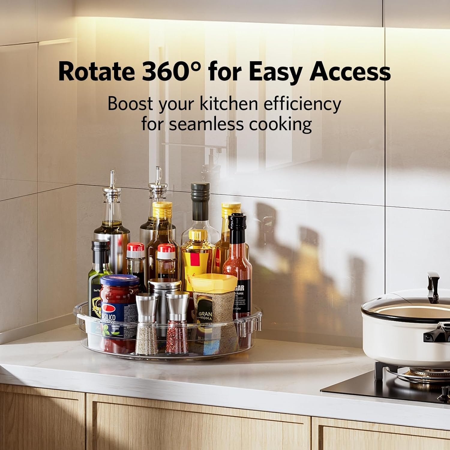 SMOOTH 360°ROTATION: No more rummaging around with our lazy susan turntable for cabinet. Simply rotate this lazy susan organizer for cabinet with a gentle spin to locate exactly what you need, saving you time and boosting your efficiency