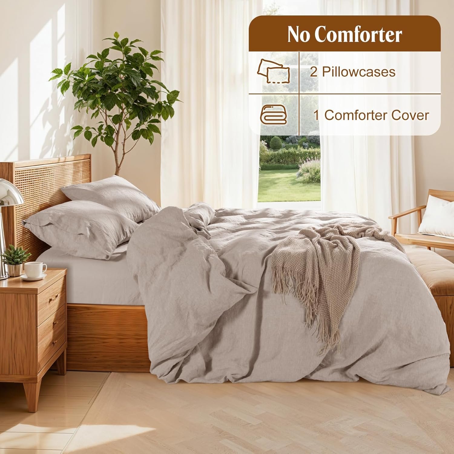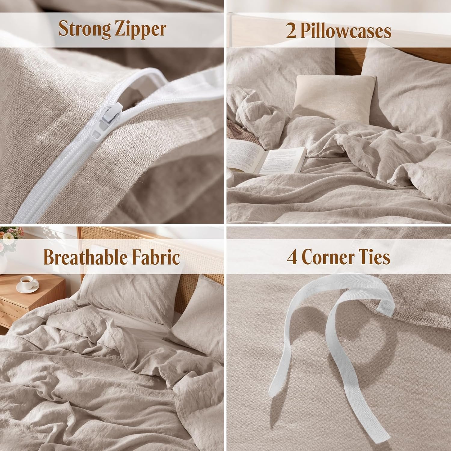 Soft and Breathable Fabric: Relax in luxury with our 100% flax linen duvet set. Ultra-soft and breathable, linen fabric offers a lightly textured, lived-in feel. Its durability, moisture-wicking properties, and easy care make it perfect for year-round comfort