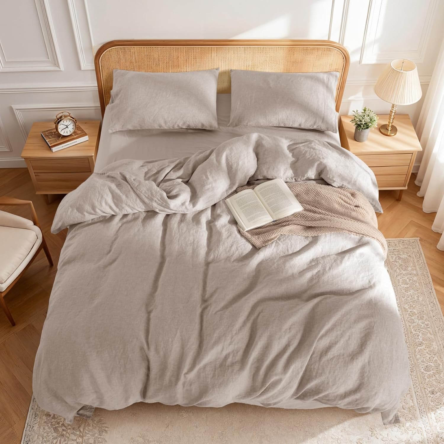 9 reviews for LBRO2M 100% France Linen Duvet Cover Set Queen Size 3 Pcs Natural Flax Comforter Cover with Zipper Closure 2 Pillowcase Breathable Duvet Cover (Linen Queen)