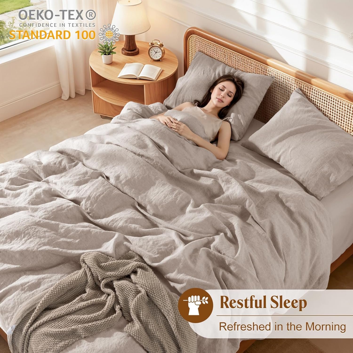 Linen Duvet Cover Set: Experience ultimate comfort with our 100% France linen duvet set. Soft, breathable, and effortlessly chic, its gently textured finish adds timeless elegance while ensuring a cozy night’s sleep; LBRO2M linen bedding sets has been certified OEKO-TEX standard 100, which is skin friendly