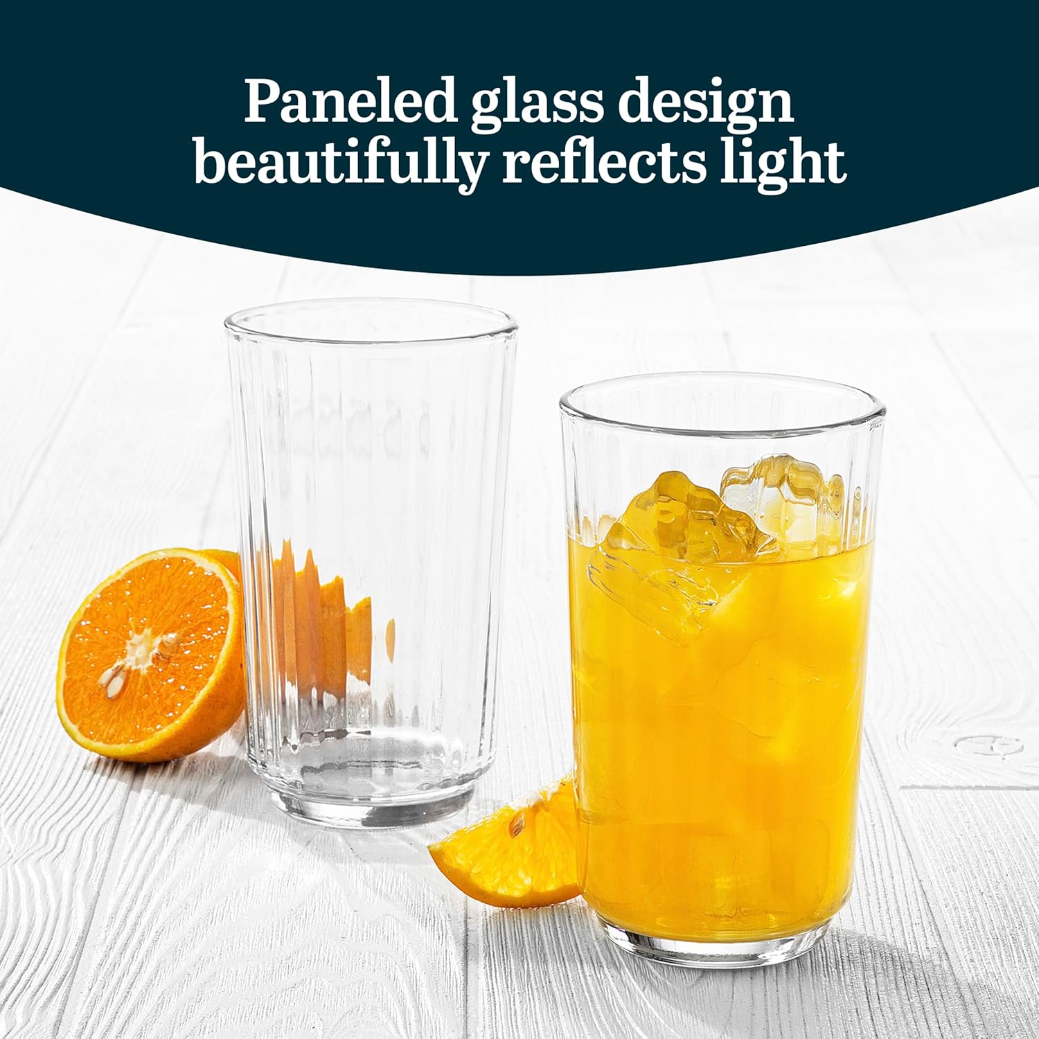 8 reviews for Libbey Paneled Highball Glasses Set of 6, 17 Oz Fine Ribbed Line Whiskey Glasses Set, Dishwasher Safe Highball Champagne Glasses for Juice, Iced Tea