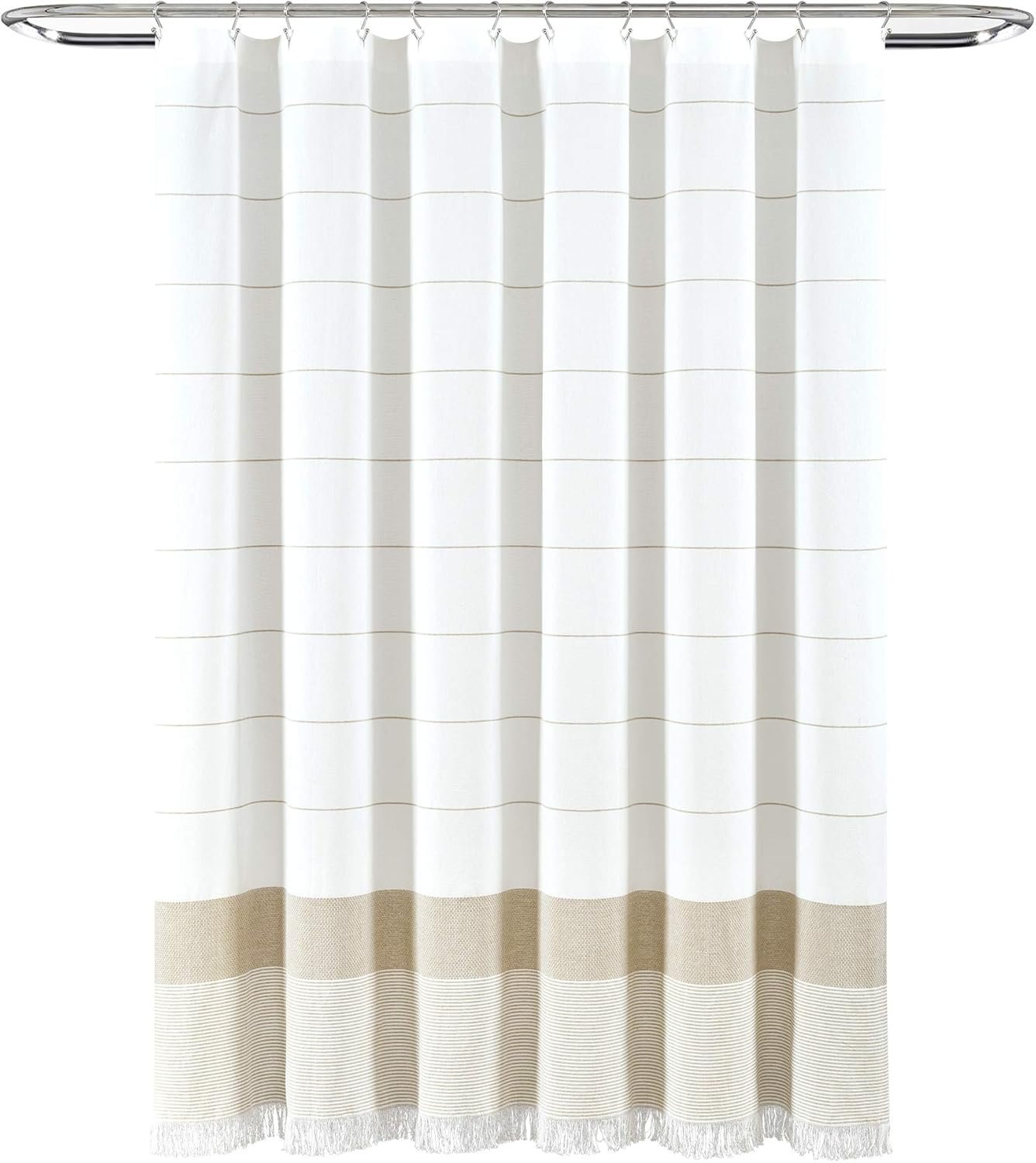 Be the first to review “Lush Decor White Woven Cotton Shower Curtain with Taupe Stripe and Tassel Fringe, Bathroom Accessories (72″ x 72″)”