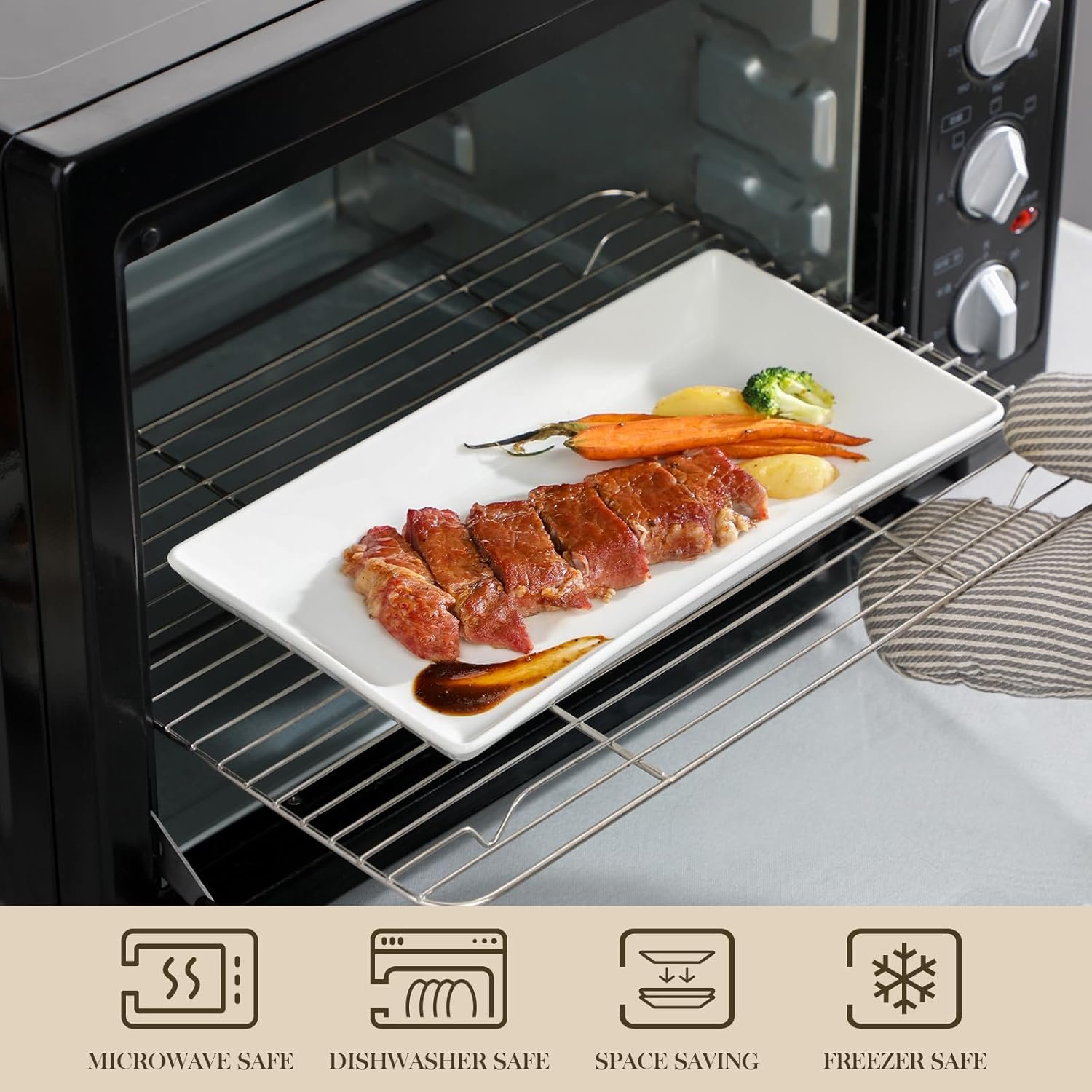 With sleek and modern white appearance, rectangular serving platters add sophistication to table and complement kitchen style.