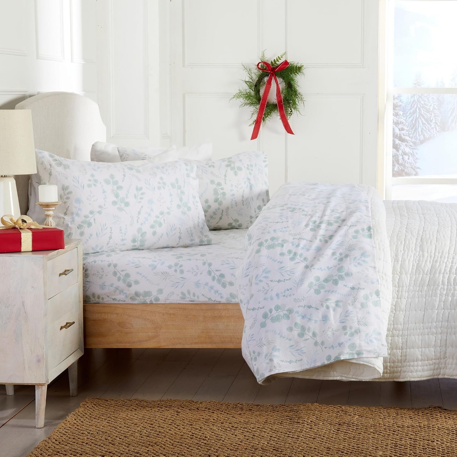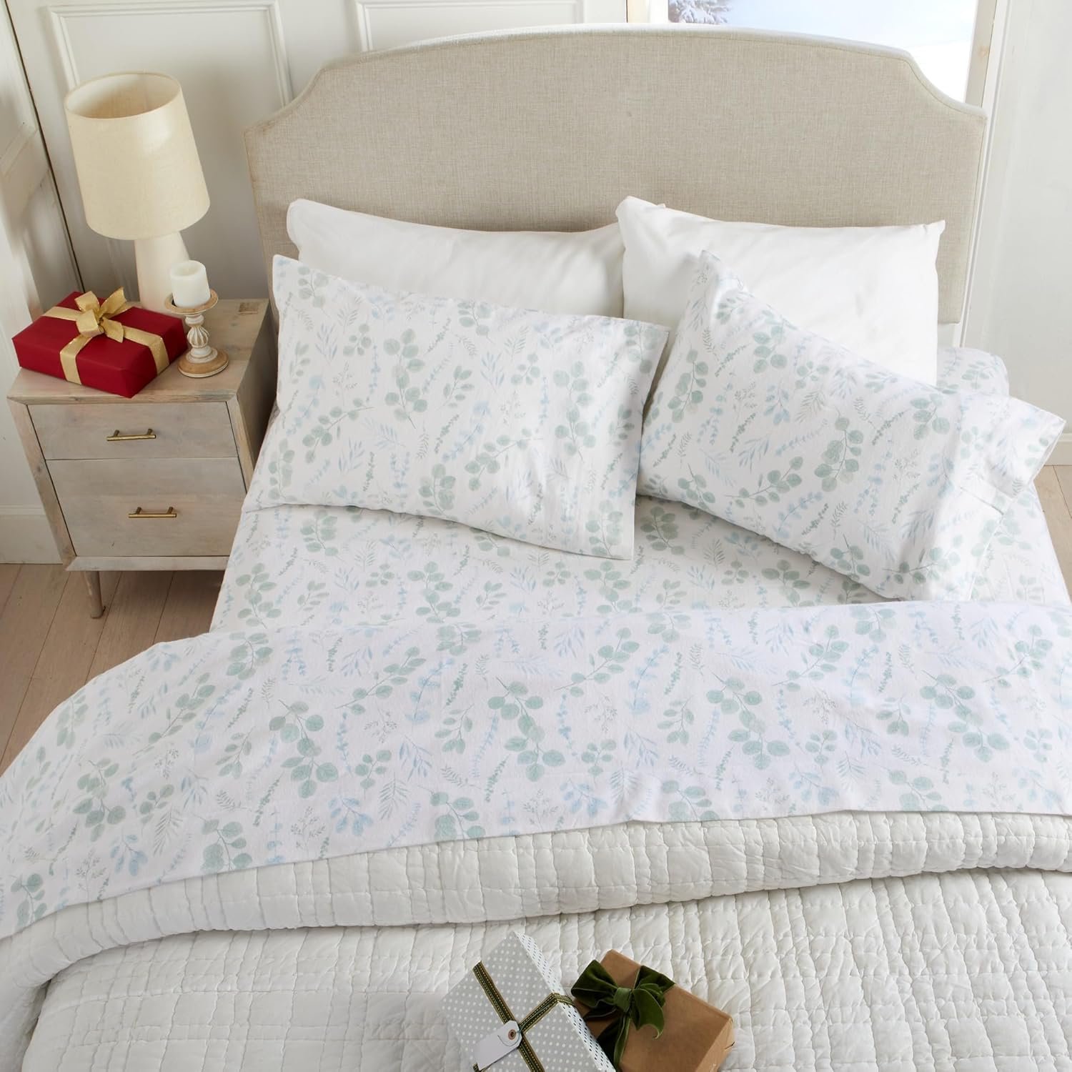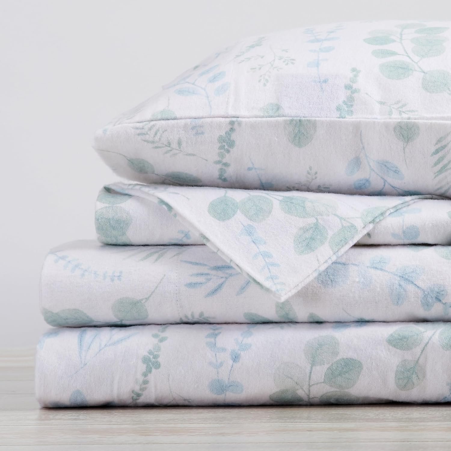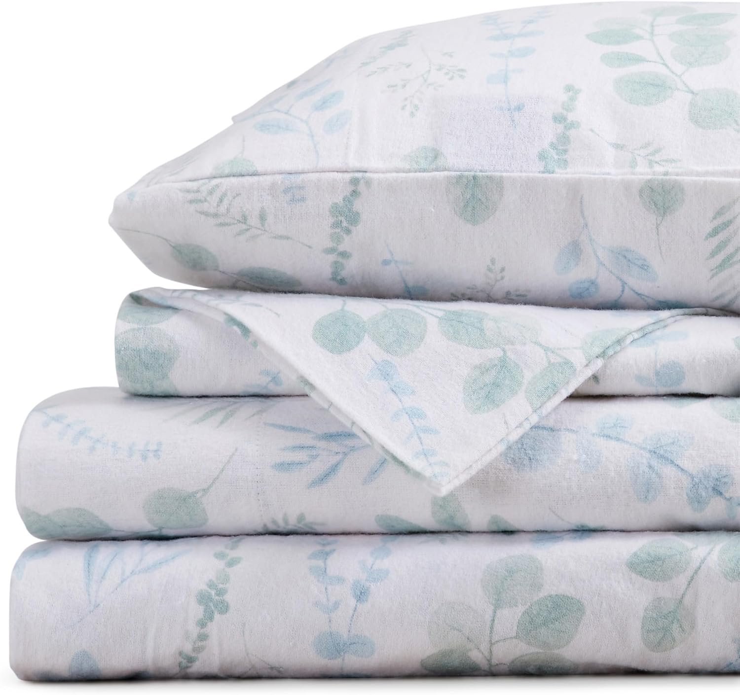 9 reviews for Market & Place 100% Cotton Queen Flannel Sheet Set | 4 Piece Deep Pocket Cozy Winter Floral Bed Sheets | Double Brushed for Extra Softness & Comfort | Alpine Collection (Queen, Eucalyptus Leaves)