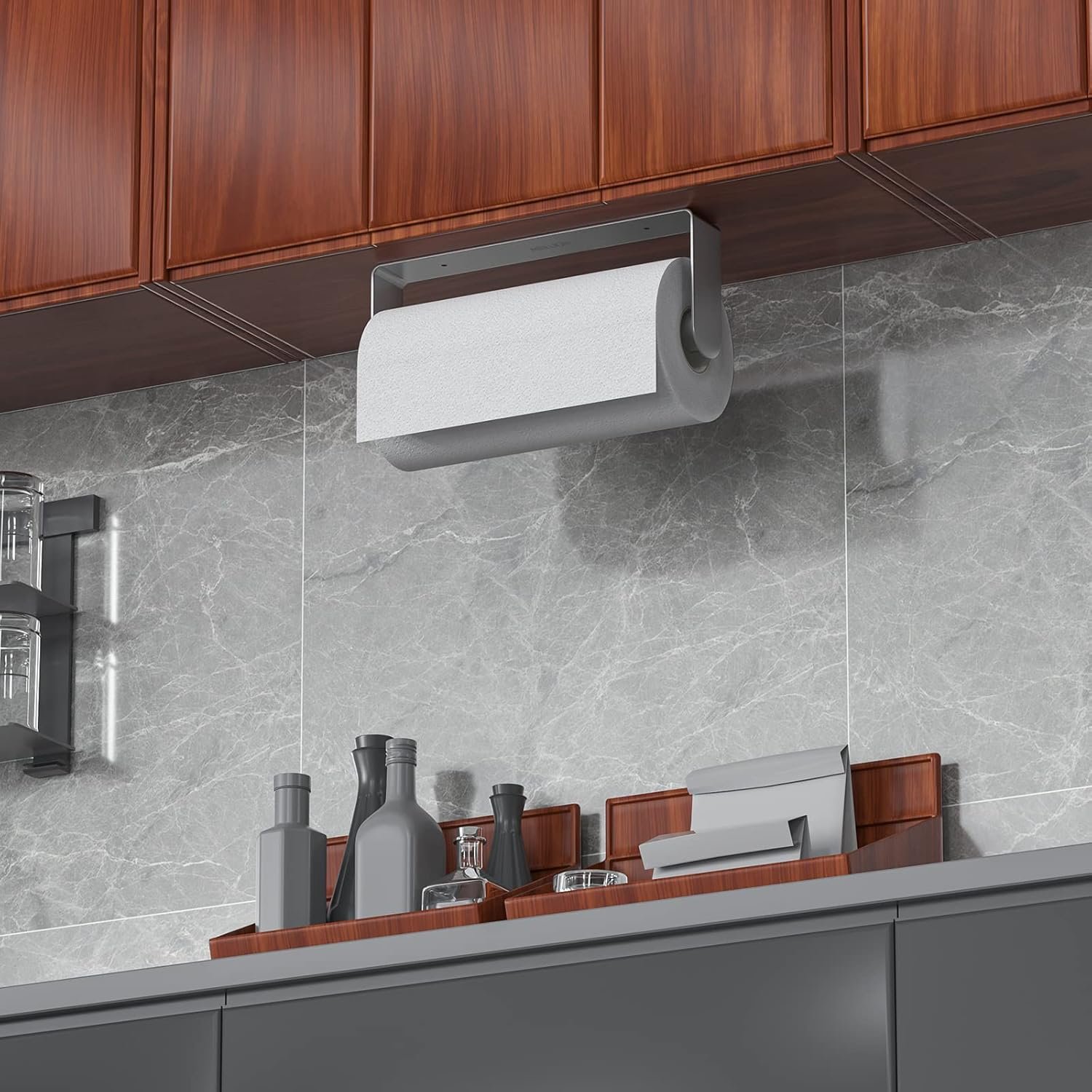 SAVE COUNTER SPACE: Quickly and efficiently dispense paper towels; Maximize your space and eliminate clutter with this quick and convenient wall mounted paper towel rack; Utilize extra wall space in kitchen and pantry to create convenient storage or mount under or inside kitchen cabinets, or inside doors; Free up space in kitchen cabinets, countertops, pantry shelves and more