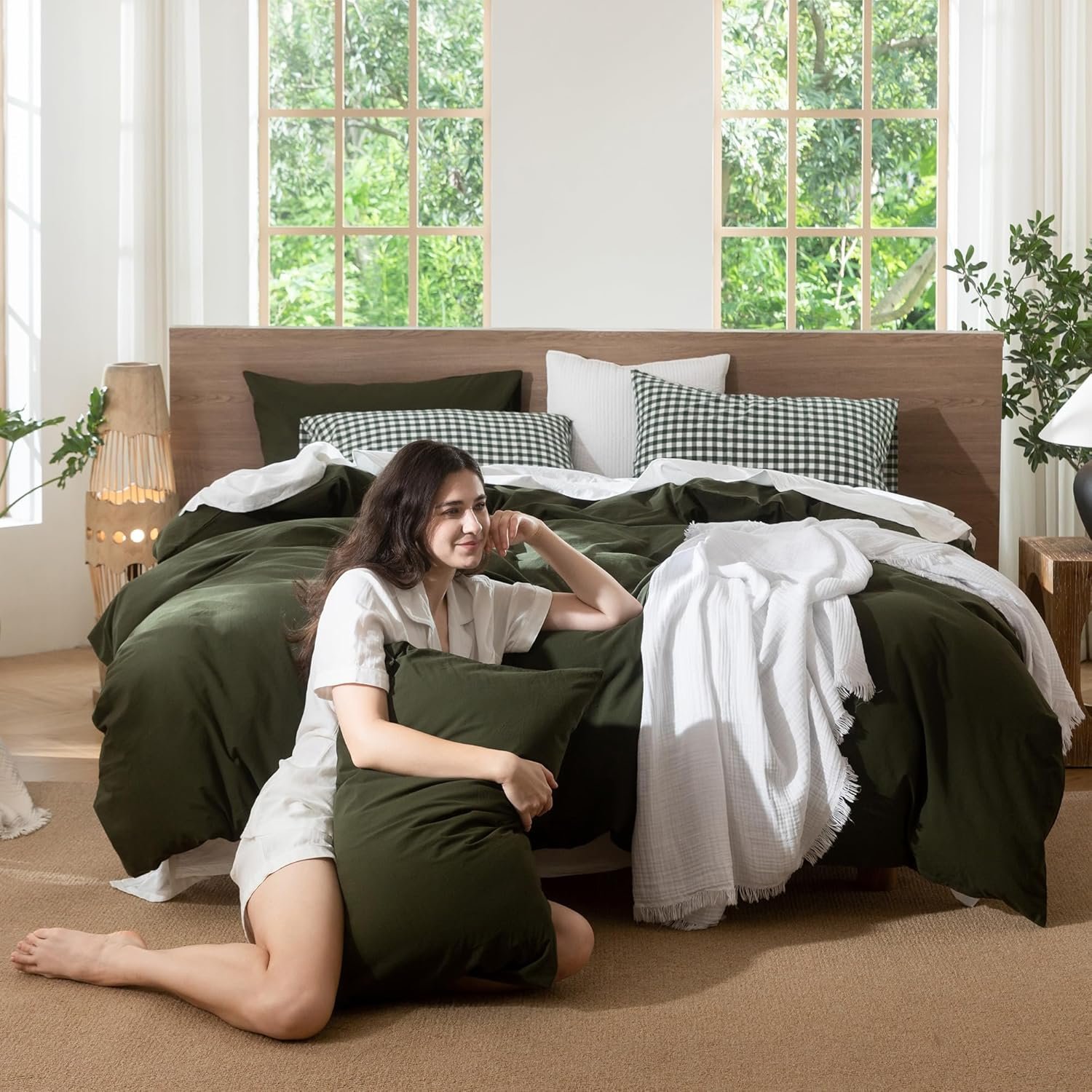 Great Texture & Comfort: Looks like linen, feels like cotton, with a lived-in, slightly wrinkled look, which offers that feeling of staying at a nice resort where the duvet cover sets are always crisp, clean and comfortable. The relaxing look of this olive green bedding set and the cool texture make it hard to get out of bed.