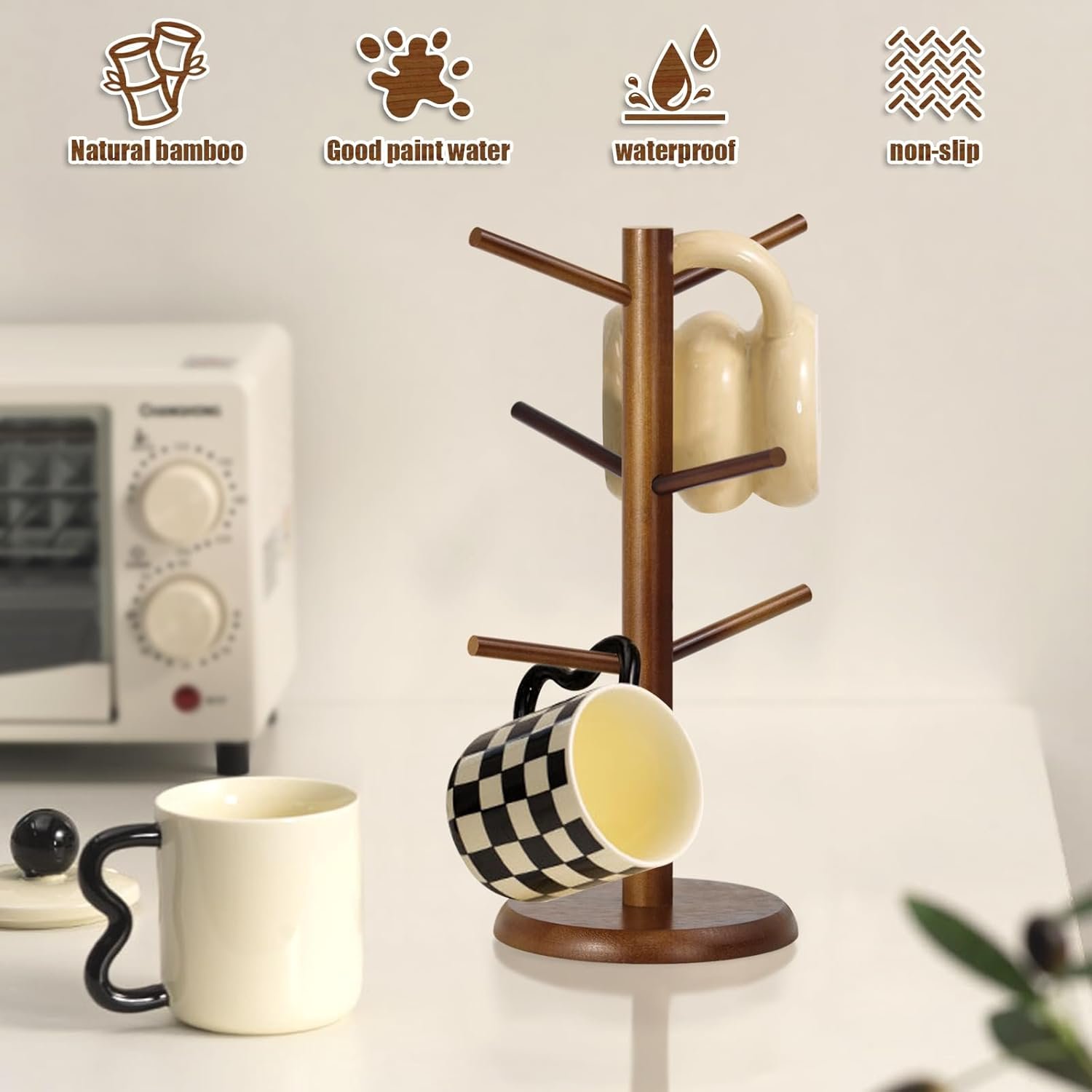 Space saving: This mug tree for counter has six brackets that can store cups, enough to meet daily needs, and can also store daily accessories, effectively saving desktop space
