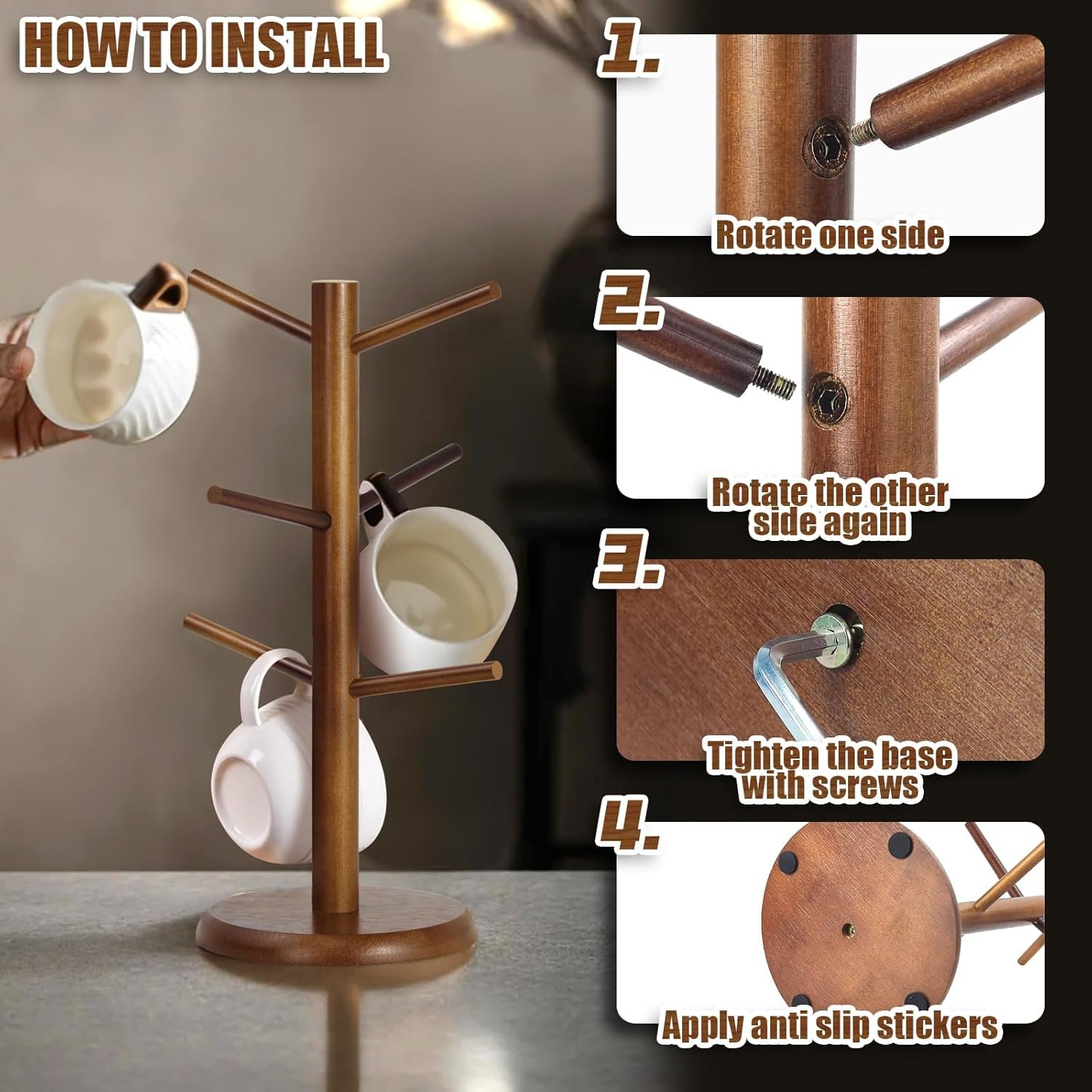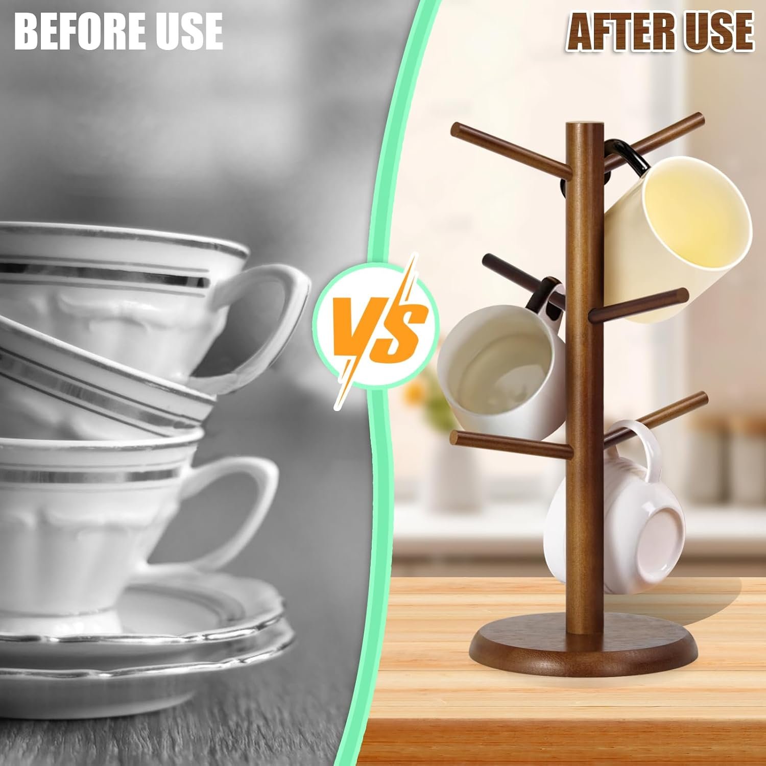High quality materials: This coffee mug holder is made of high-quality wood, which is sturdy, durable, wear-resistant, and has a long service life
