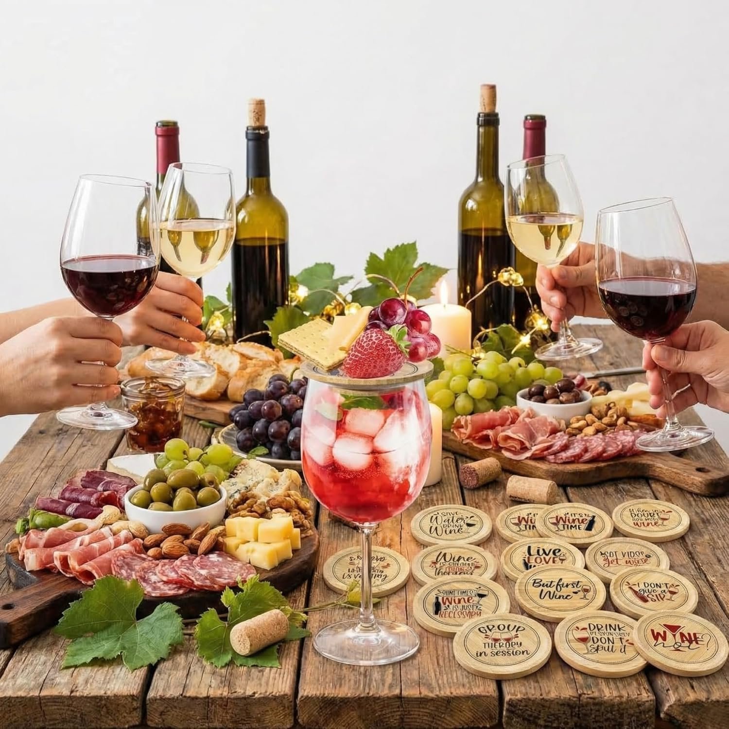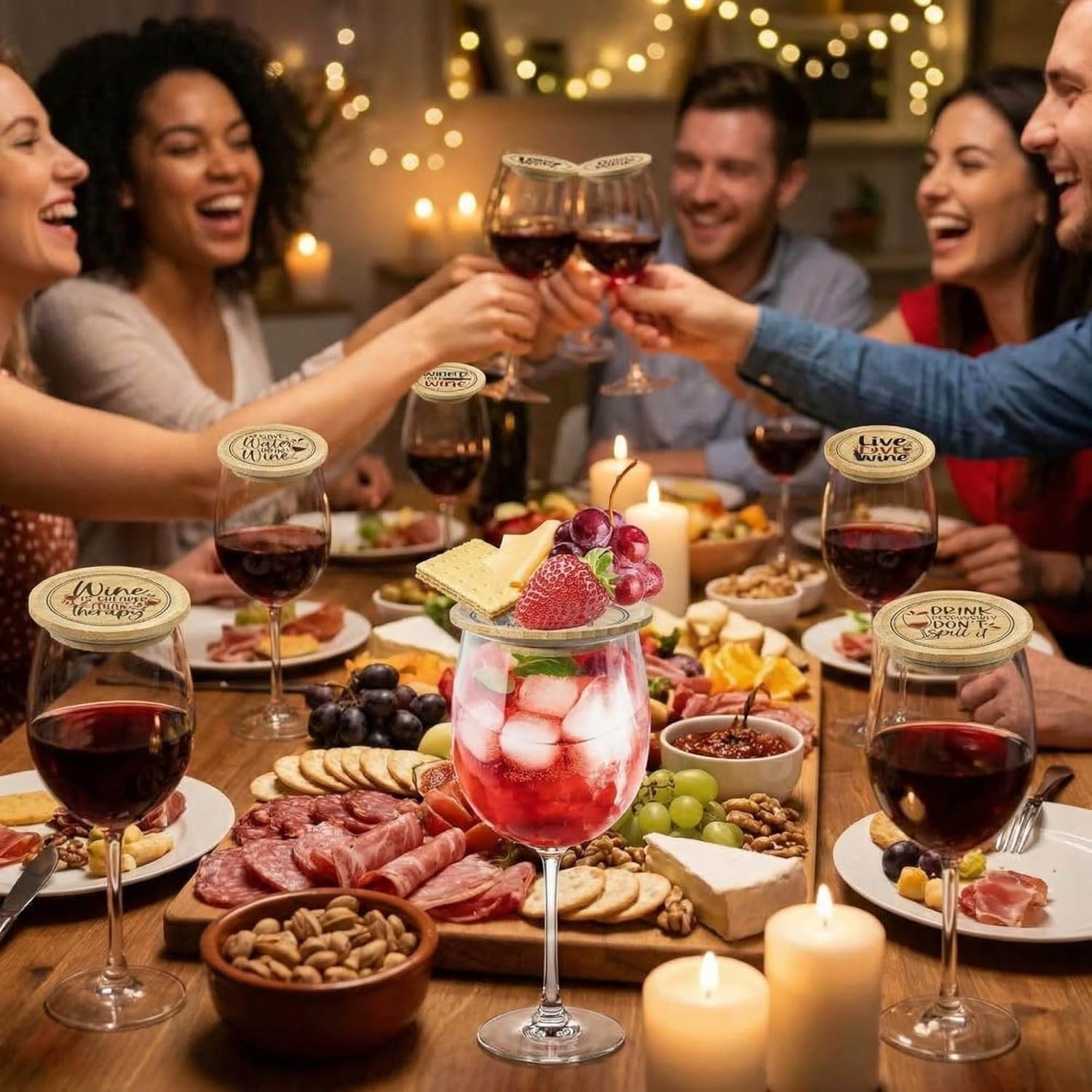 Ideal Party Accessory for All Occasions: no party is complete without our charcuterie wine glass toppers; Whether it’s a formal wine tasting event, a family gathering, or a relaxed backyard gathering; These wine glass covers are nice for all occasions, adding a touch of characteristic to your gatherings while also keeping your wine safe from contaminants