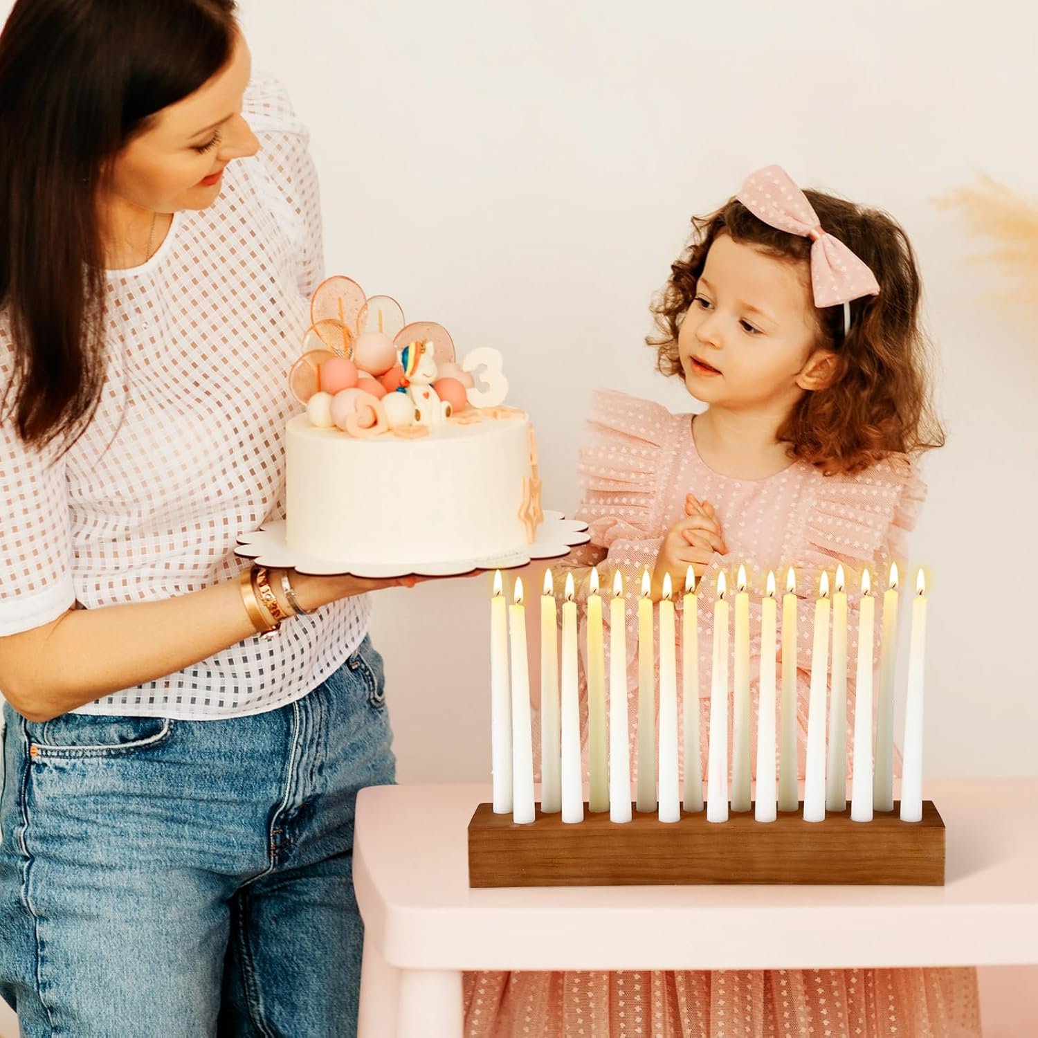 Fashionable Design: the candle stands for taper candles feature the elegance of simplicity; Its classic design and natural wood material make it a piece that easily blends into most styles of your places; Whether it’s a modern setting or a traditional style, this candle holder adds a warm, charming touch; Its multiple candle holding capacity is a practical feature, creating a soft ambient glow, suitable for unwinding after a long day or hosting an intimate gathering
