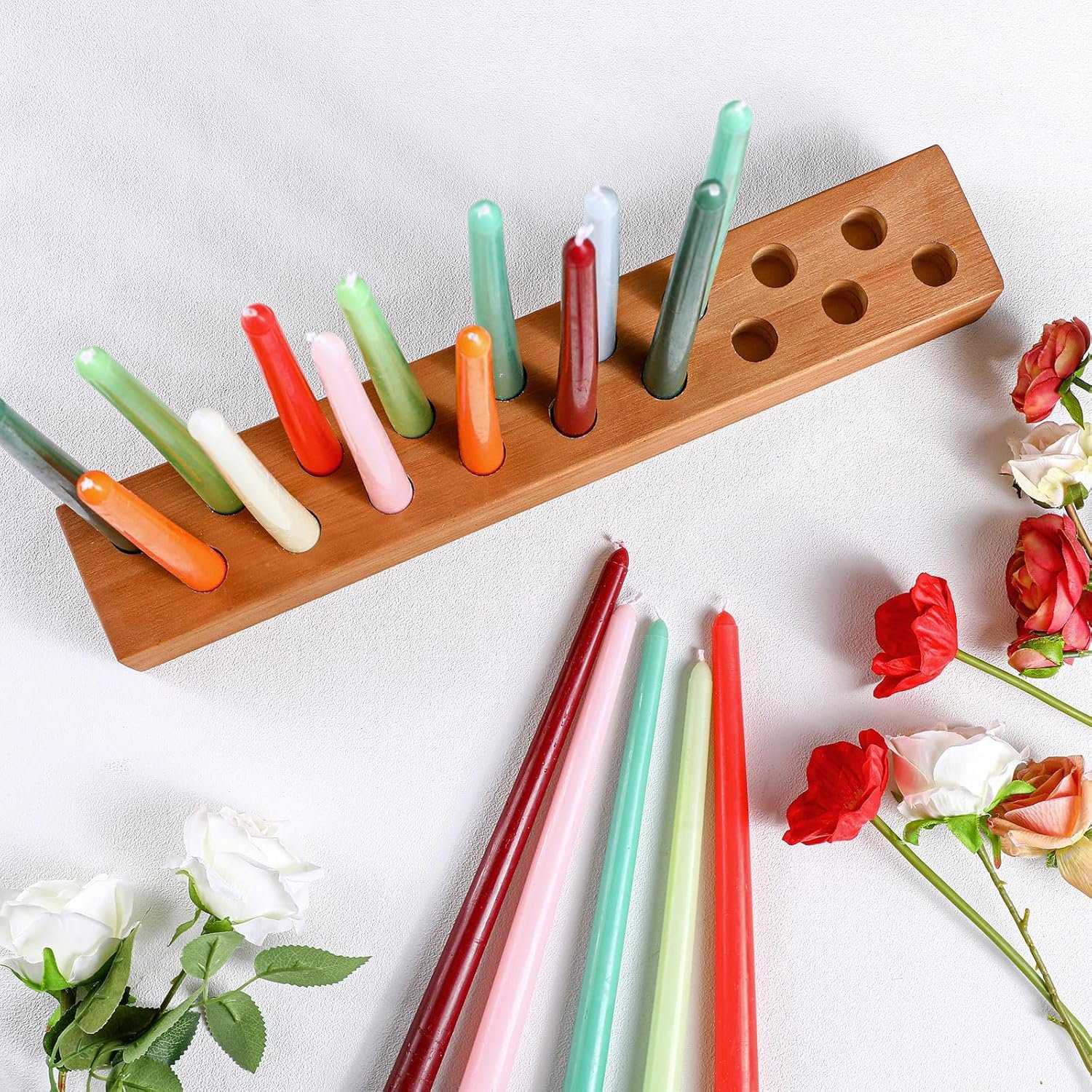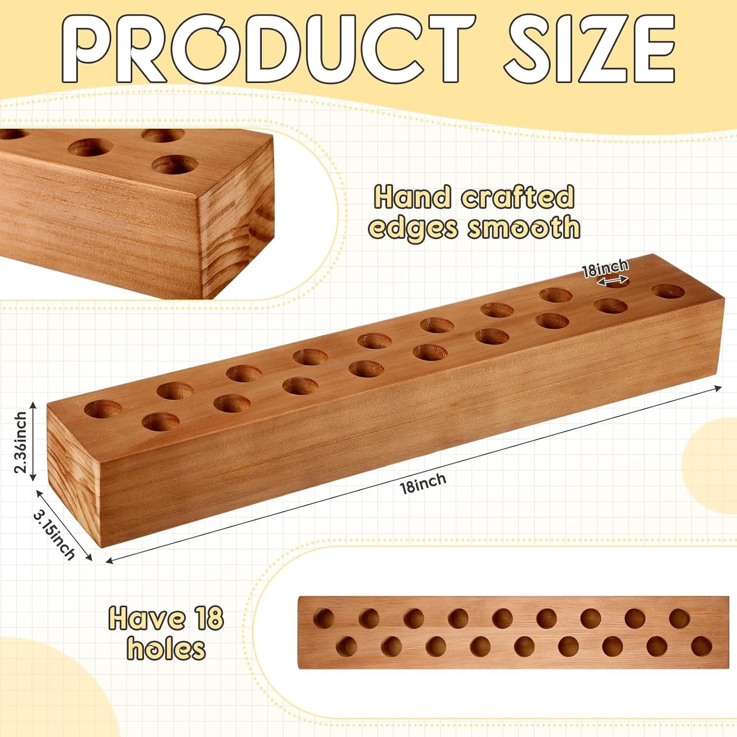 Proper Size: the wood candle holder measures about 18 x 3.15 x 2.36 inches/ 45.7 x 8 x 6 cm, making it an imposing yet elegant piece to showcase; Each candleholder has 18 holes, all of which are suitable for tapered candles of 7/8 inches standard size, providing a warm and inviting atmosphere to your room