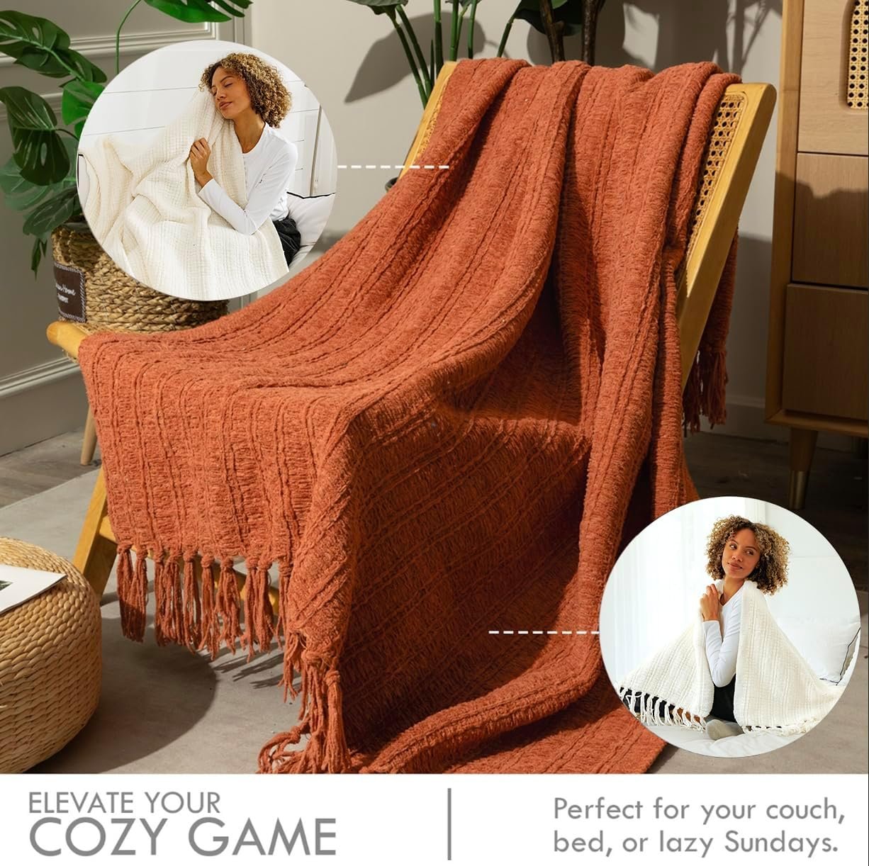 Versatile & Stylish: In vibrant fall orange, this couch throw blanket features a knit texture that complements any décor. Drape this decor blanket for sofa over a couch, bed, or chair for a cozy touch, or take it on picnics, camping, or road trips.