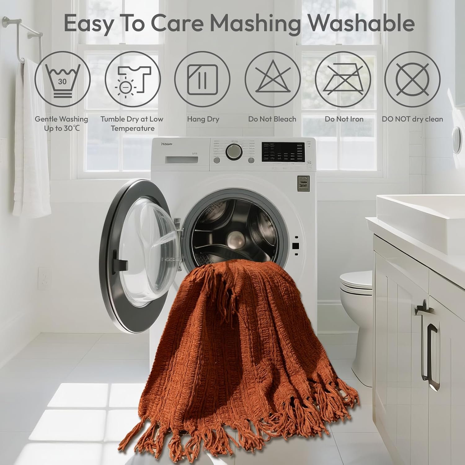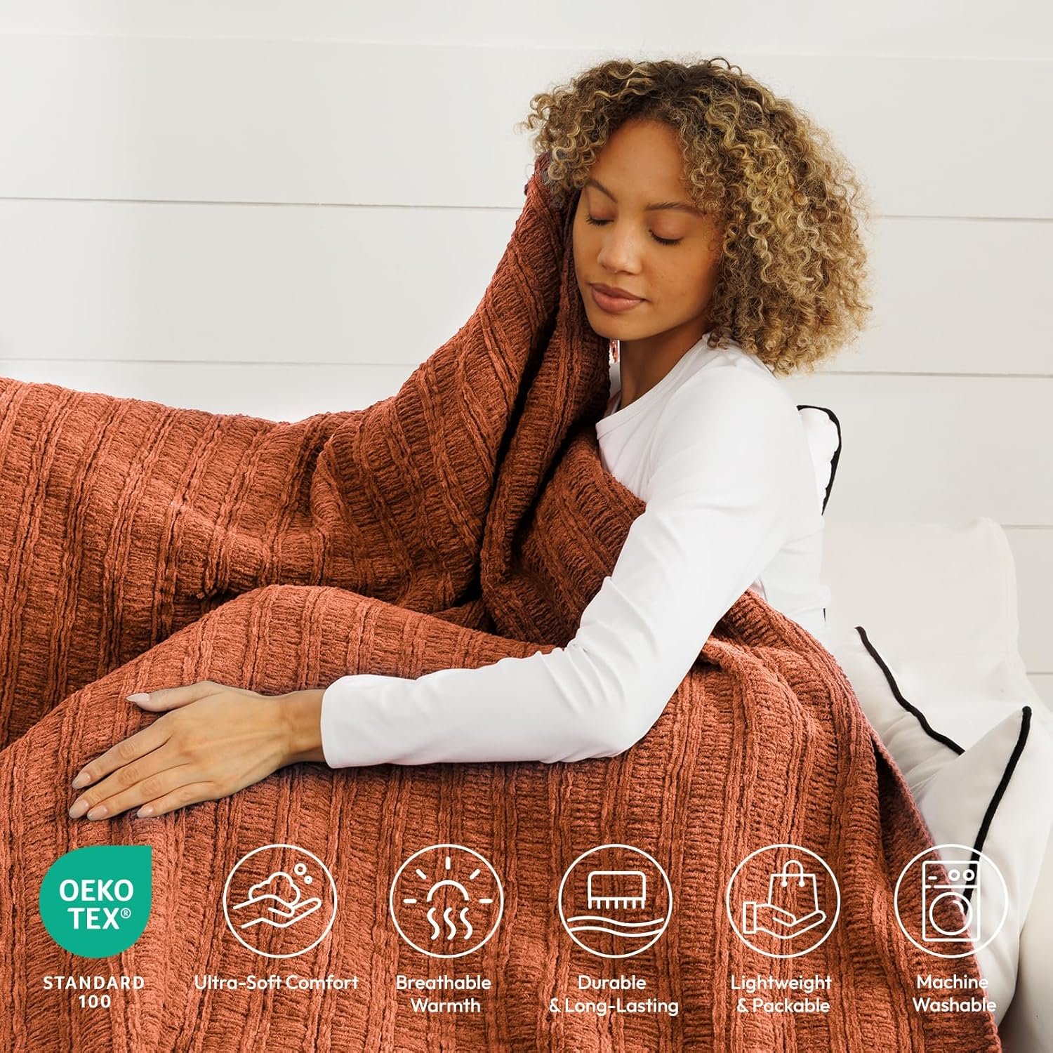 Easy Care & Long-Lasting: Machine washable for effortless upkeep, this 50″x60″ decorative throw blanket withstands repeated washes without losing softness or color. It dries quickly, so you can enjoy this soft boucle knit blanket without the hassle.