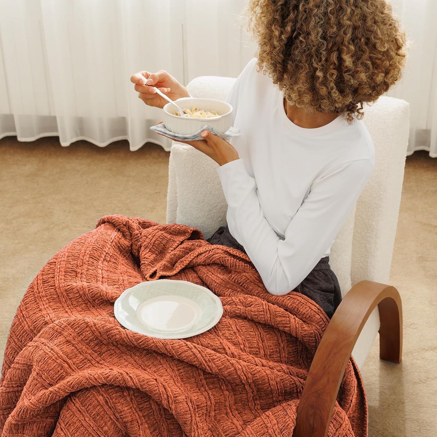Lightweight & Breathable: This cozy bed throw blanket features a breathable knit for optimal airflow, keeping you comfy without overheating. Perfect for summer nights or chilly mornings, this orange sofa blanket adapts to your needs in any season.
