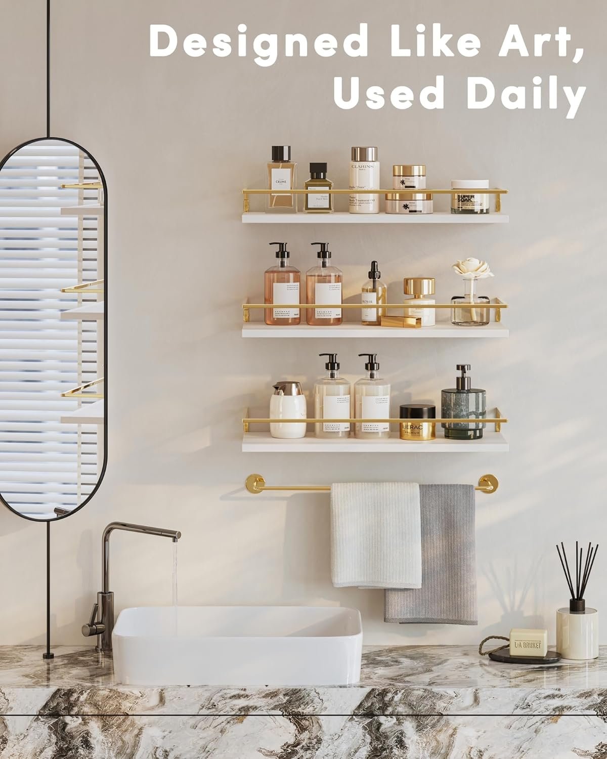 Be the first to review “Onlysky Bathoom Shelves, Floaiting Shelves for Bathroom, Set of 3, Bathroom Shelf Wall Mounted (White Gold, 15.7 Inches, 3)”