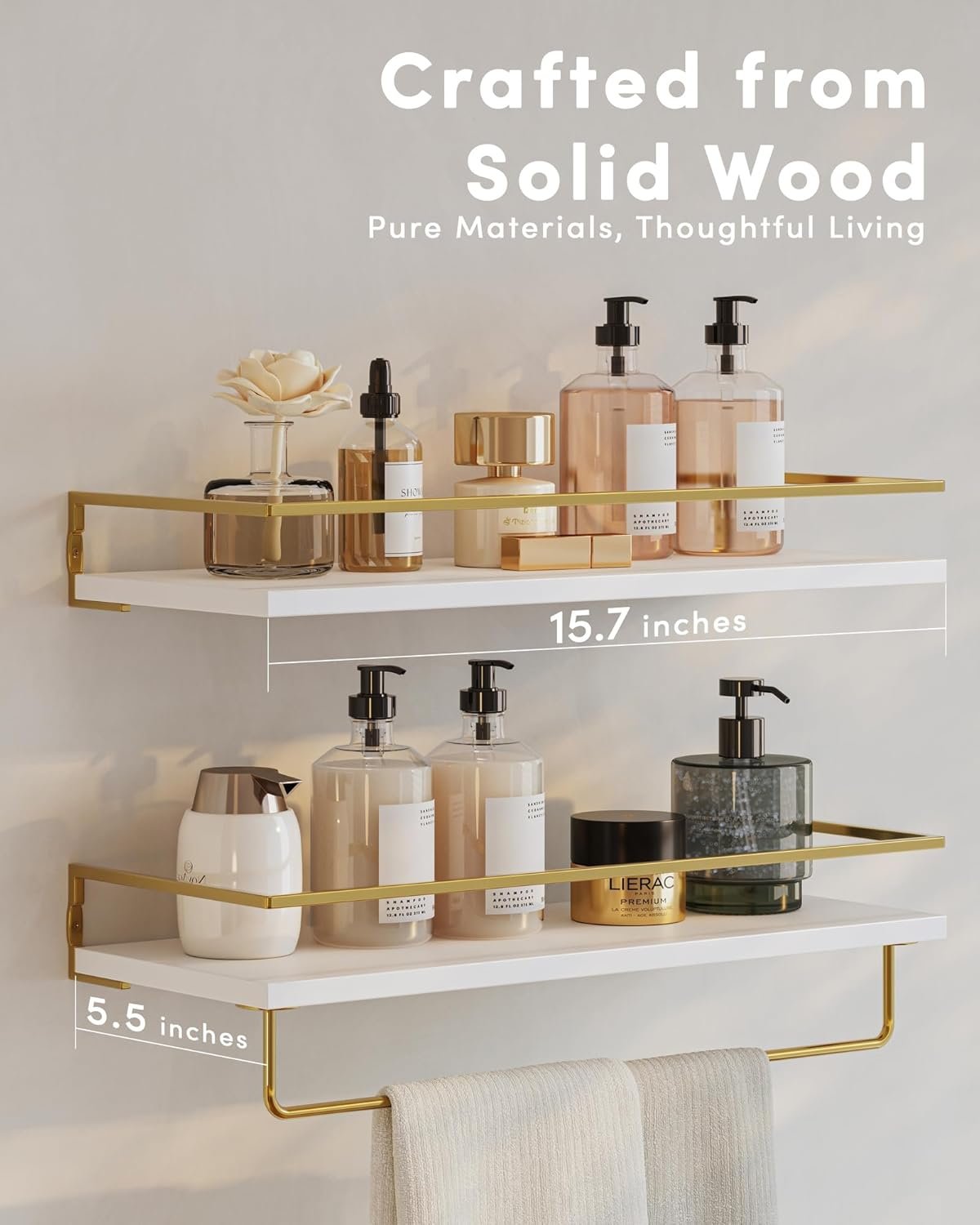Premium Solid Wood Construction: Crafted from high-density solid wood, these floating shelves offer exceptional durability and strength. Unlike particleboard, they resist warping and moisture, ensuring your bathroom shelves remain stable and reliable for years