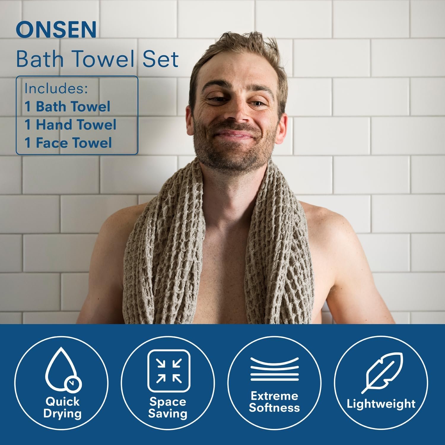 12 reviews for ONSEN Waffle Bath Towel Set – 3-Piece Lightweight Cotton Towels for Bathroom – Bath, Hand and Face Towels – Quick Dry, Absorbent, Soft – Ideal for Guest, Travel or Home – White