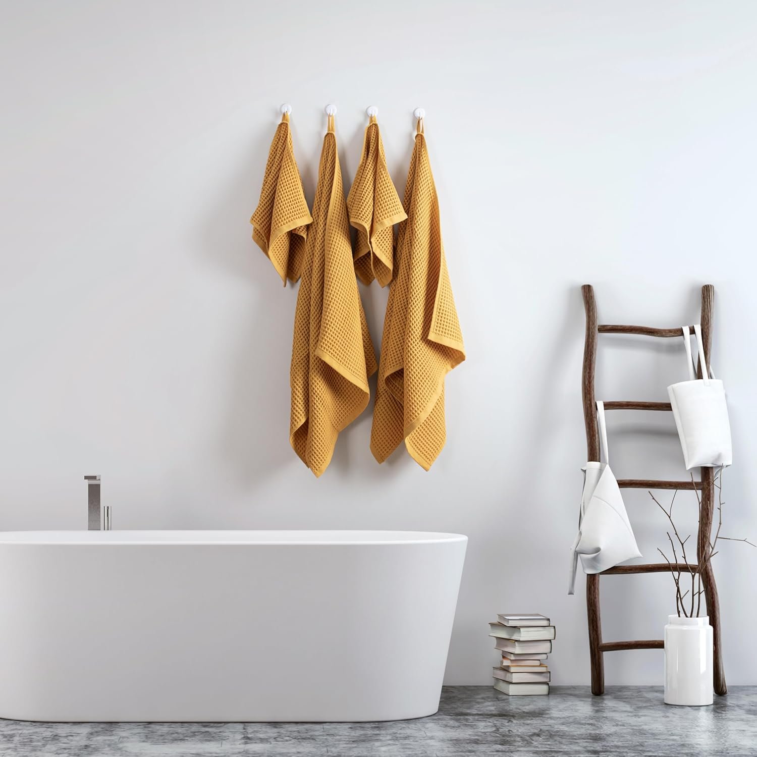 PACKAGE CONTENT: Each Püskül Textile stunning mustard yellow color waffle towel set contains 4 pieces; 2 Pieces luxurious waffle bath towels and 2 Pieces coordinating waffle hand towels