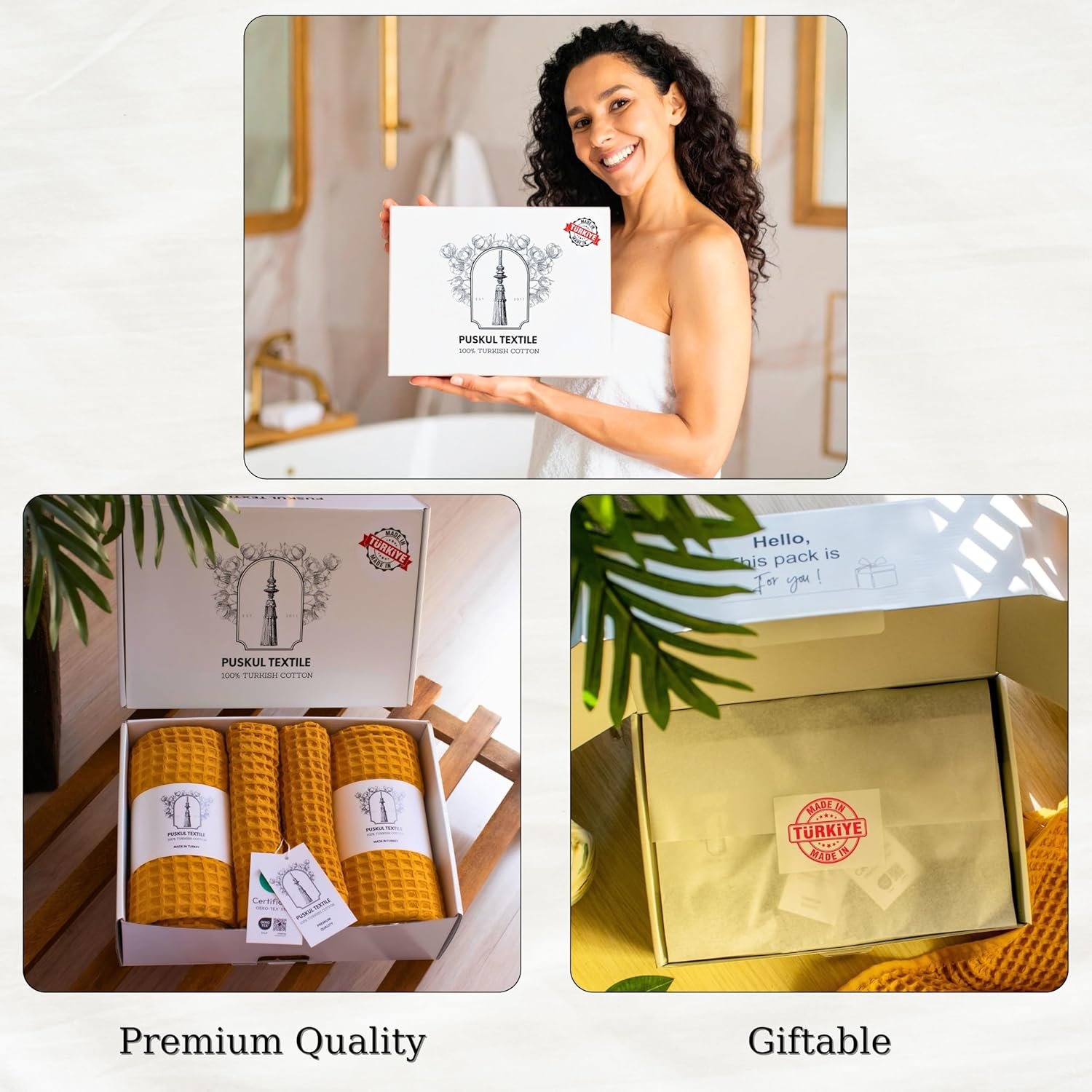 🔹PURE 100% TURKISH COTTON: Experience the natural comfort and incredible feel of our luxurious Puskul Tekstil waffle weave Turkish towels, crafted from organic 100% Turkish cotton. 🔹MADE IN TURKEY: Experience the difference of genuine Turkish mastery. Every Puskul Tekstil premium quality Turkish cotton waffle towel set is meticulously made in Türkiye under strict OEKO-TEX Standards, showcasing high-quality craftsmanship from its rich Turkish heritage