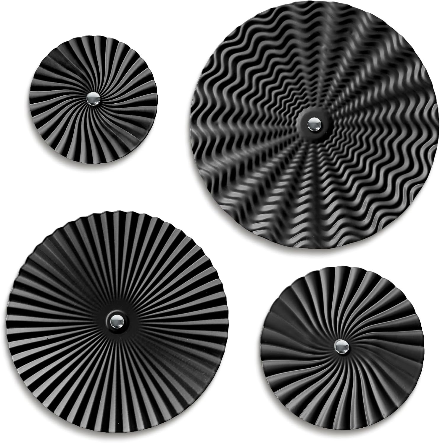 Beautiful design:Includes four black round metal wall panels featuring dynamic ripple and starburst textures in assorted patterns