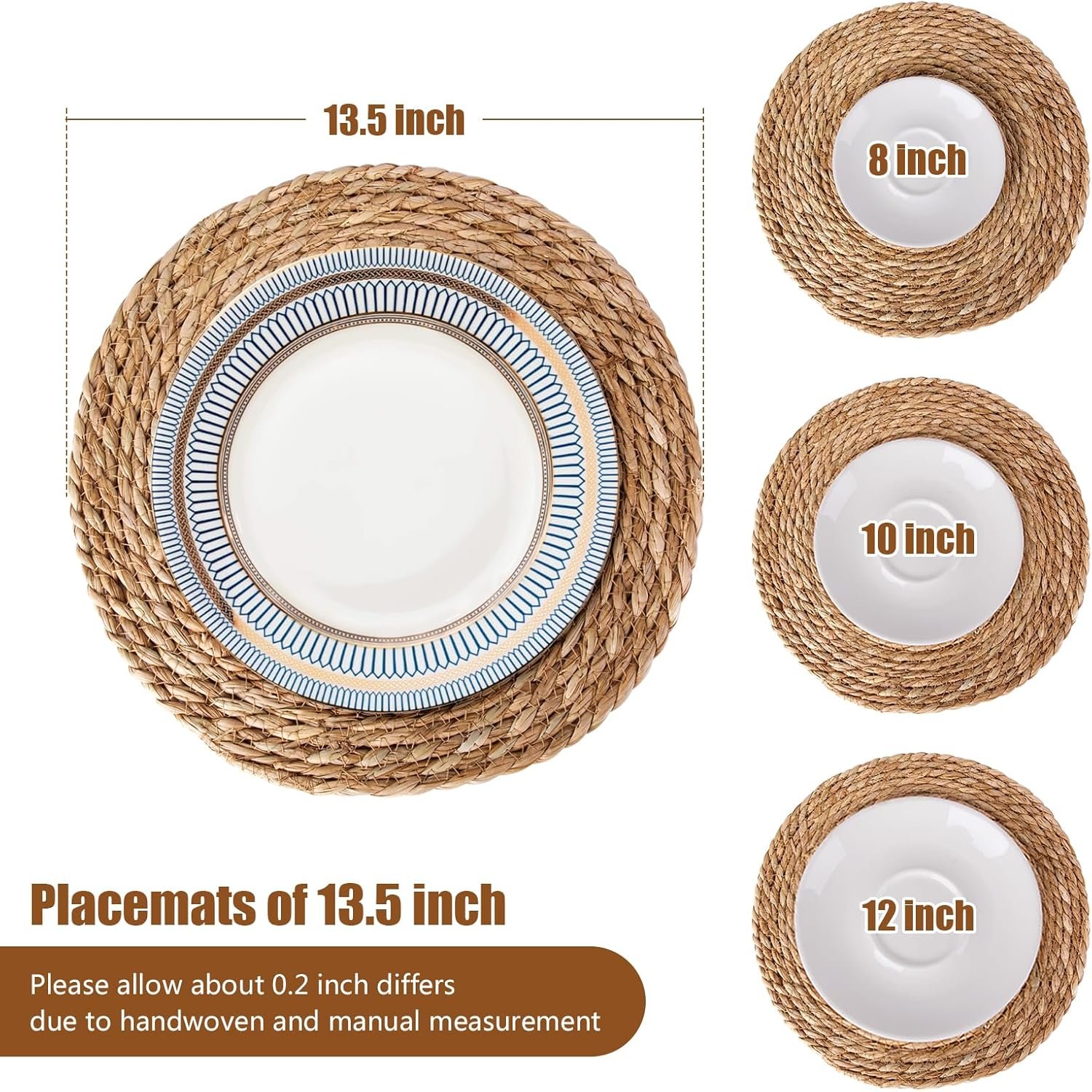 【Elegant Rustic Design】Round wicker woven placemats are 13.5 inch in diameter. Each rattan placemat is woven by genius craftsmen. The expert handmade weaving method makes them elegant and unique. Perfect for a variety of interior design styles, from coastal to bohemian, rustic to farmhouse, and cottagecore, these placemats are a versatile and stylish choice for any home. These beautiful rustic dining table decoration also can impress your guests.