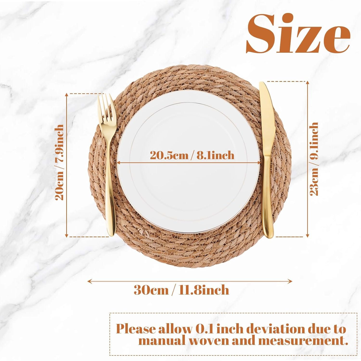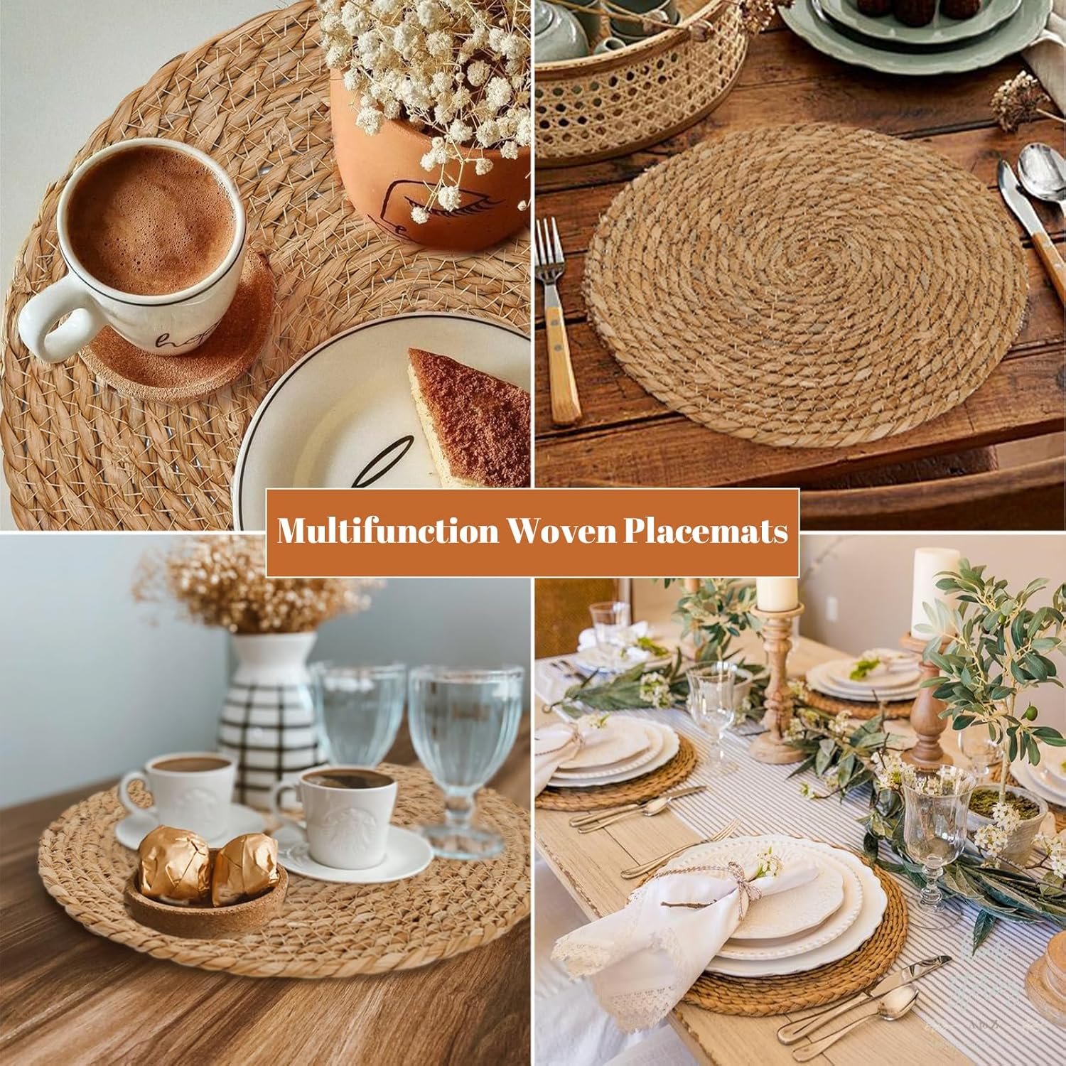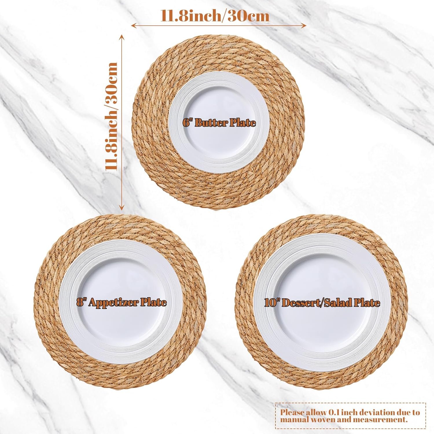 [Woven Plate Chargers Set] Boho hand-woven placemats are braided with 12 inch, 13 inch and 13.5 inch large rattan chargers for dinner plates, which are large enough to accommodate plates, bowls and utensils. Whether you are hosting a family gathering dinner, garden party or wedding, it’s unique decoration on the table and enhancing the overall beauty.