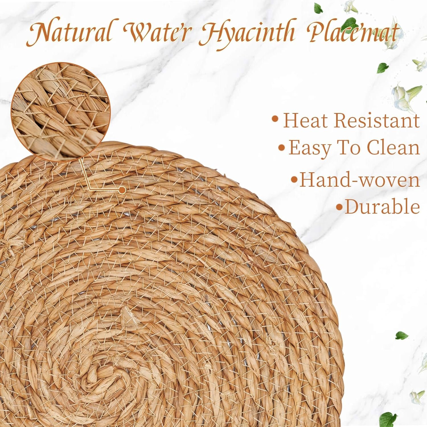 Unique woven texture of the water hyacinth place-mat is clearly visible with natural color.